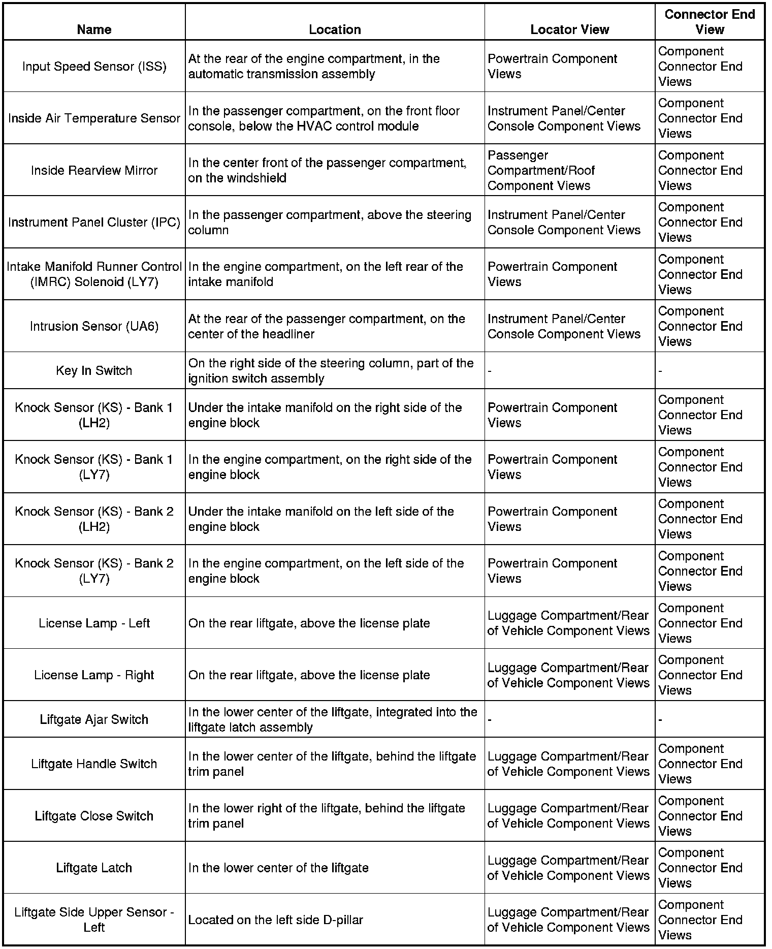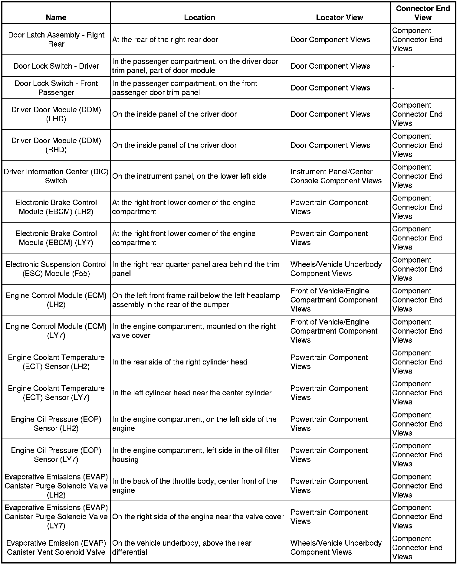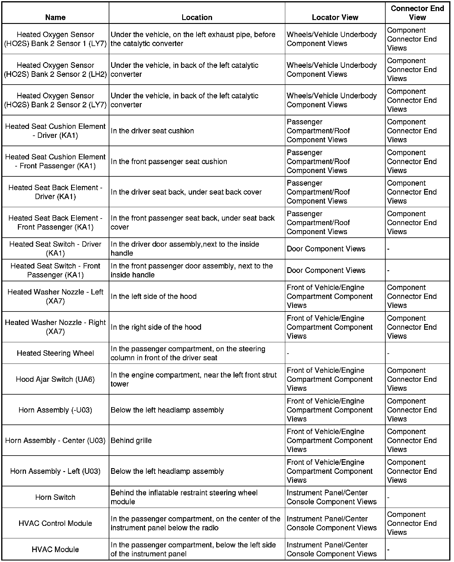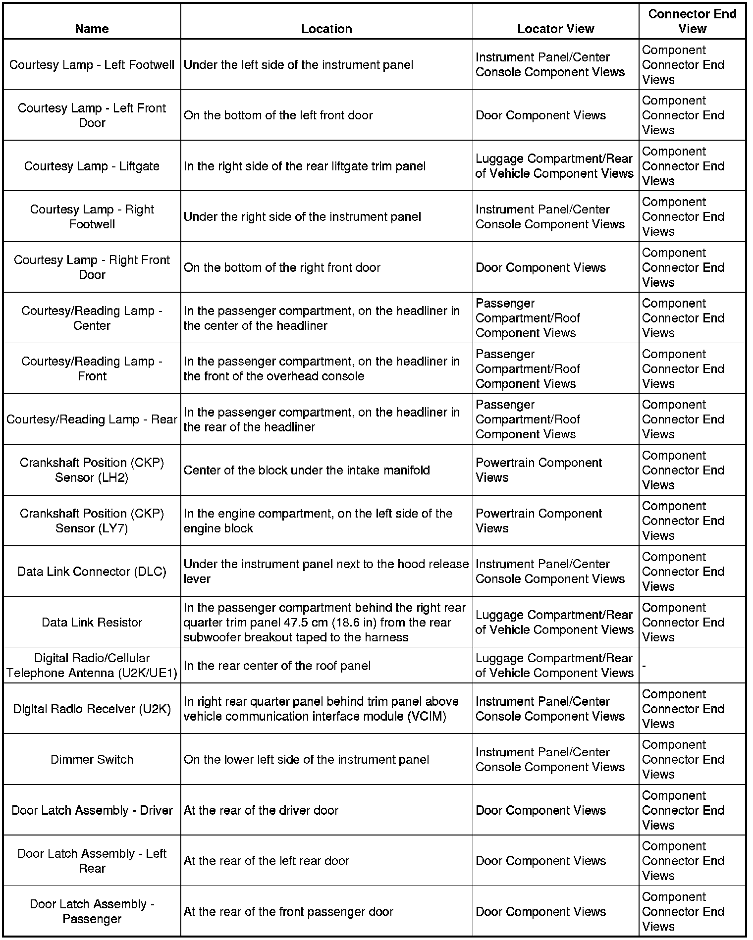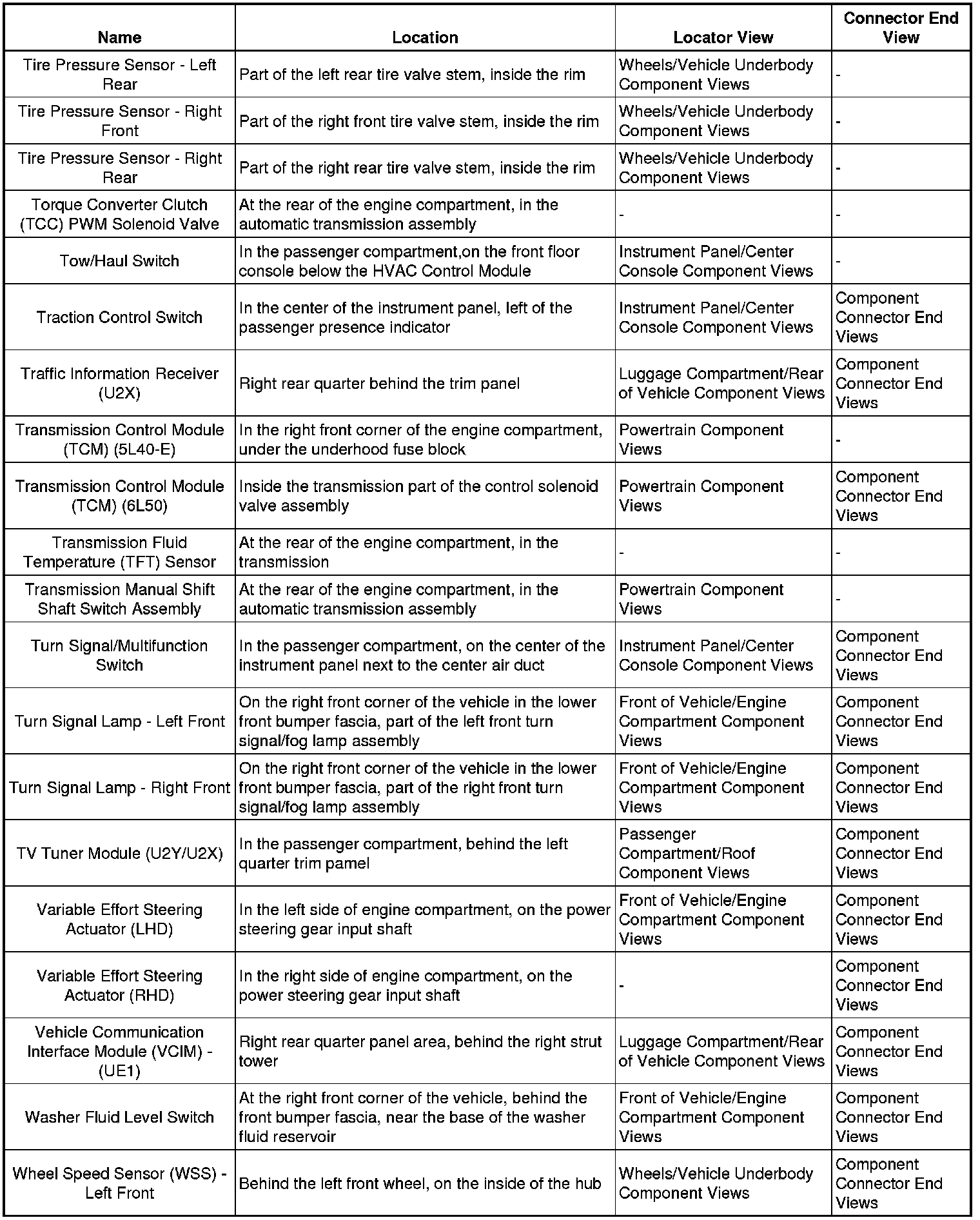 Master Electrical Component ListA/C - Ant: