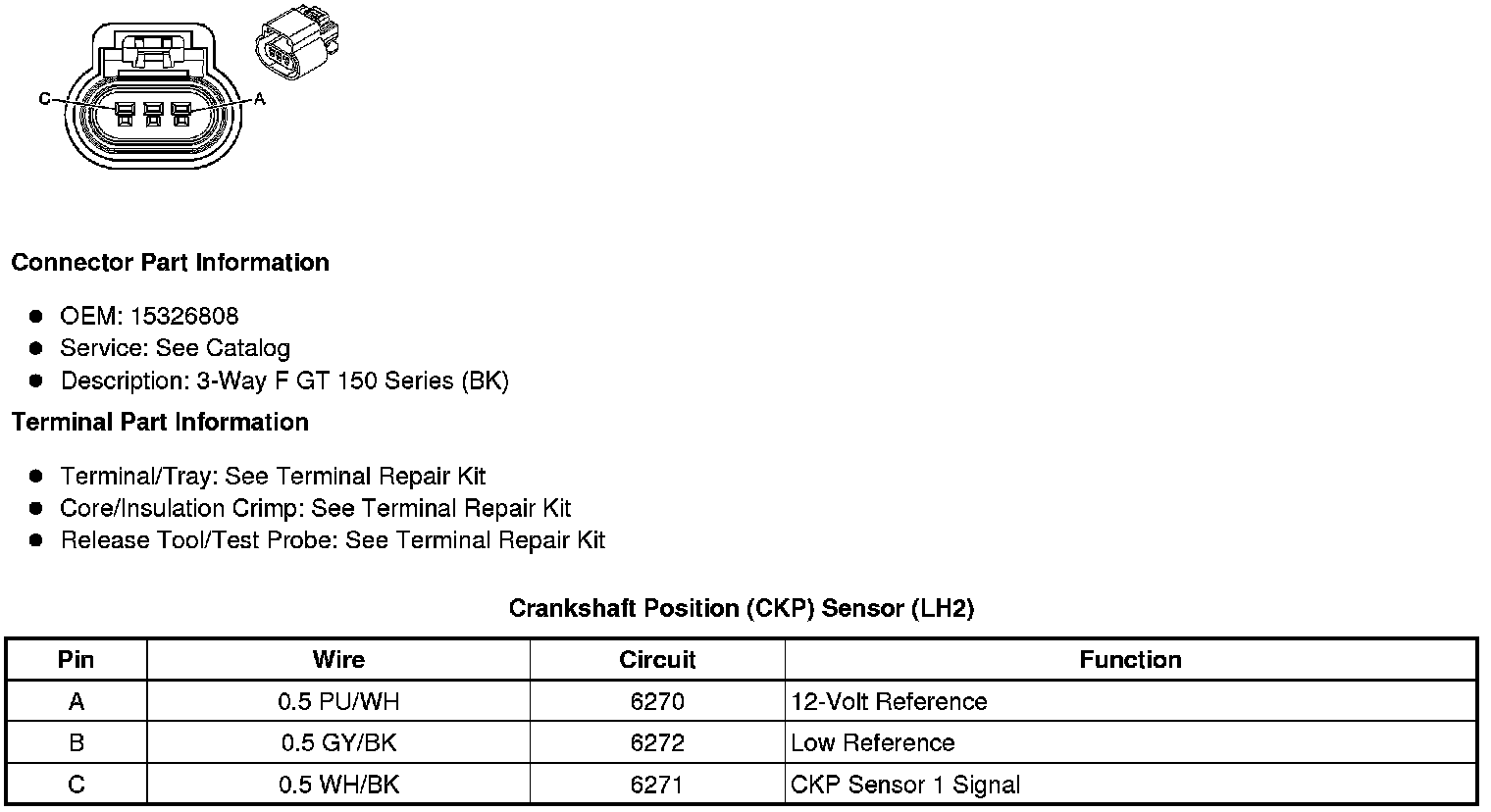 Crankshaft Position (CKP) Sensor (LY7 - Gas, 6 Cylinder, 3.6L, SFI, V6)