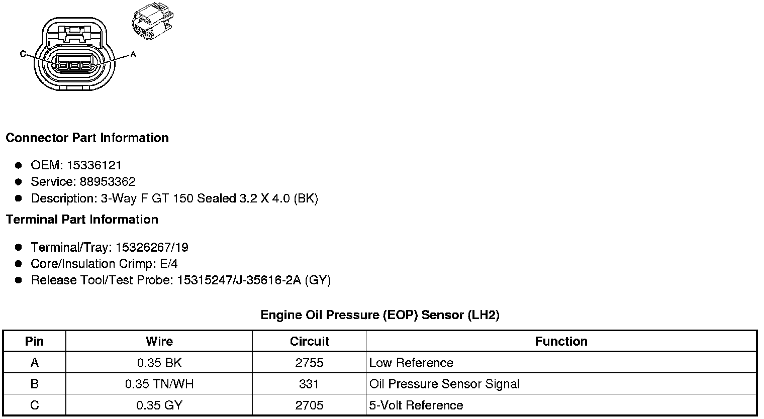 Engine Oil Pressure (EOP) Sensor (LY7 - Gas, 6 Cylinder, 3.6L, SFI, V6)