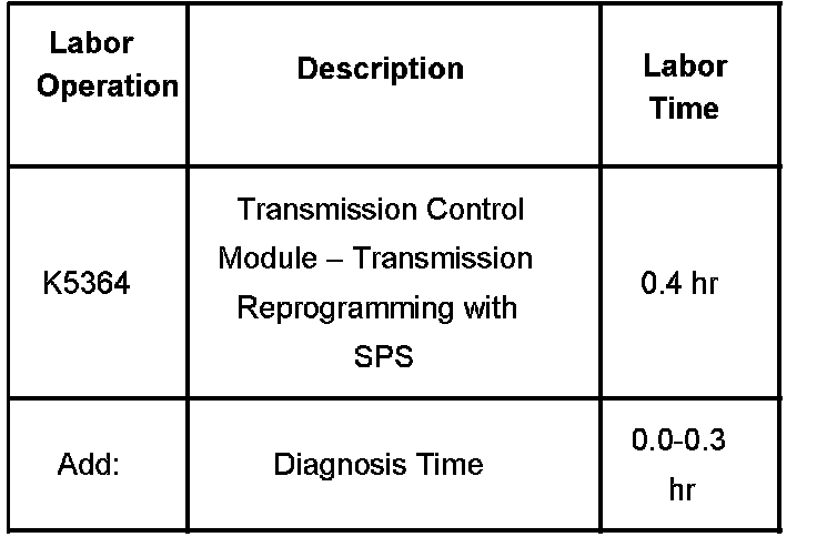 A revised transmission calibration has been developed to address this issue. Reprogram the TCM with an updated software calibration. This new service calibration is available on TIS2WEB using the Service Programming System (SPS). As always, make sure your Tech 2(R) is updated with the latest software version.