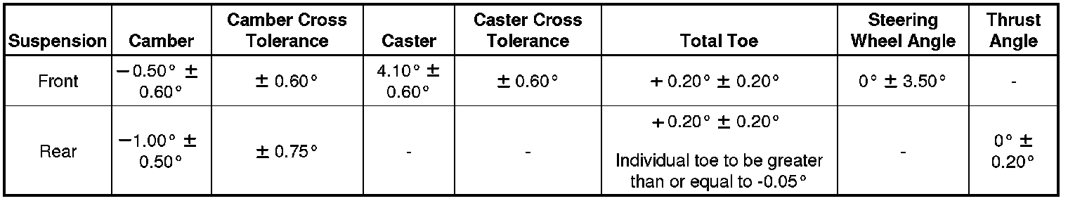 Wheel Alignment Specifications
