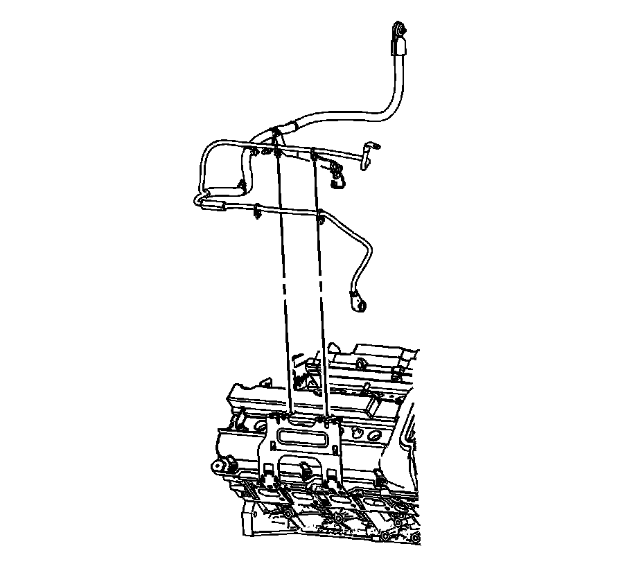 2. Install the positive battery cable behind the rear engine wiring harness bracket.