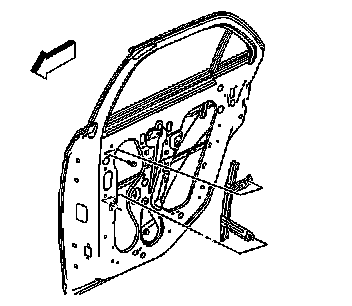 2. Remove the door trim panel. Refer to Rear Side Door Trim Panel Replacement (Service and Repair) .