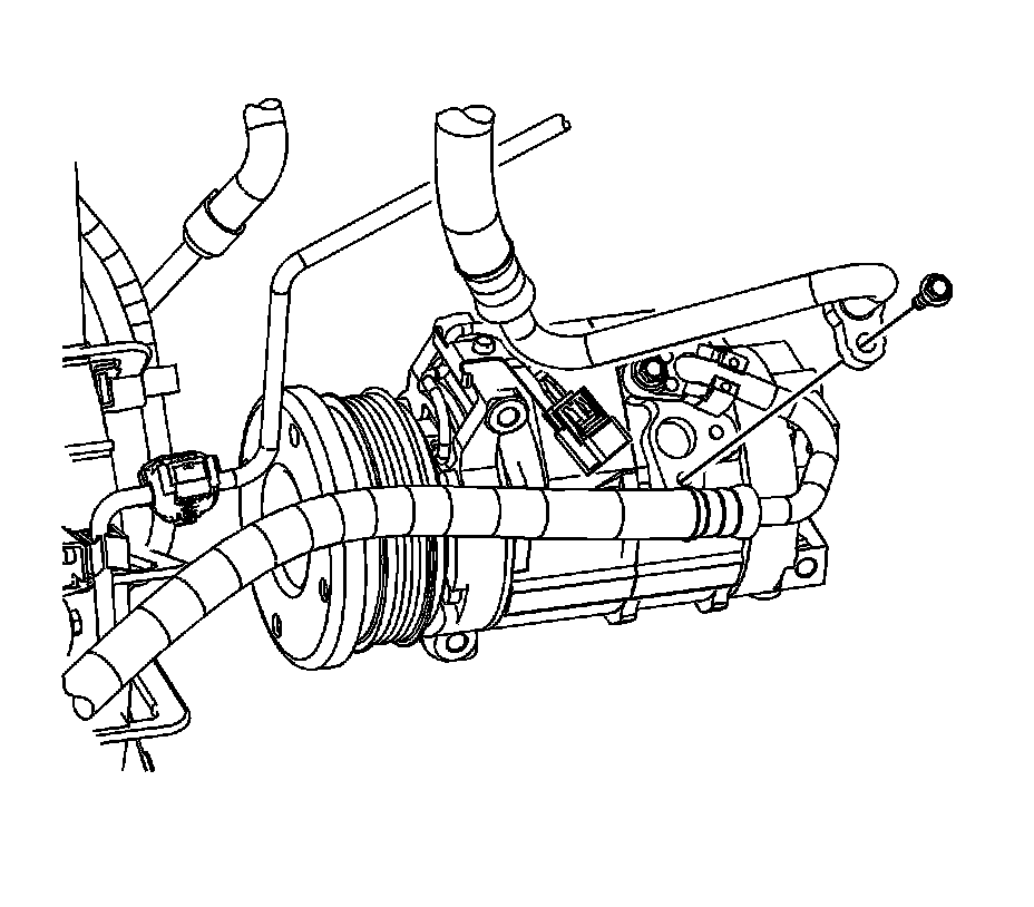 3. Disconnect the drive belt from the A/C compressor. Refer to Air Conditioning Compressor and Power Steering Pump Belt Replacement (Air Conditioning Compressor and Power Steering Pump Belt Replacement).