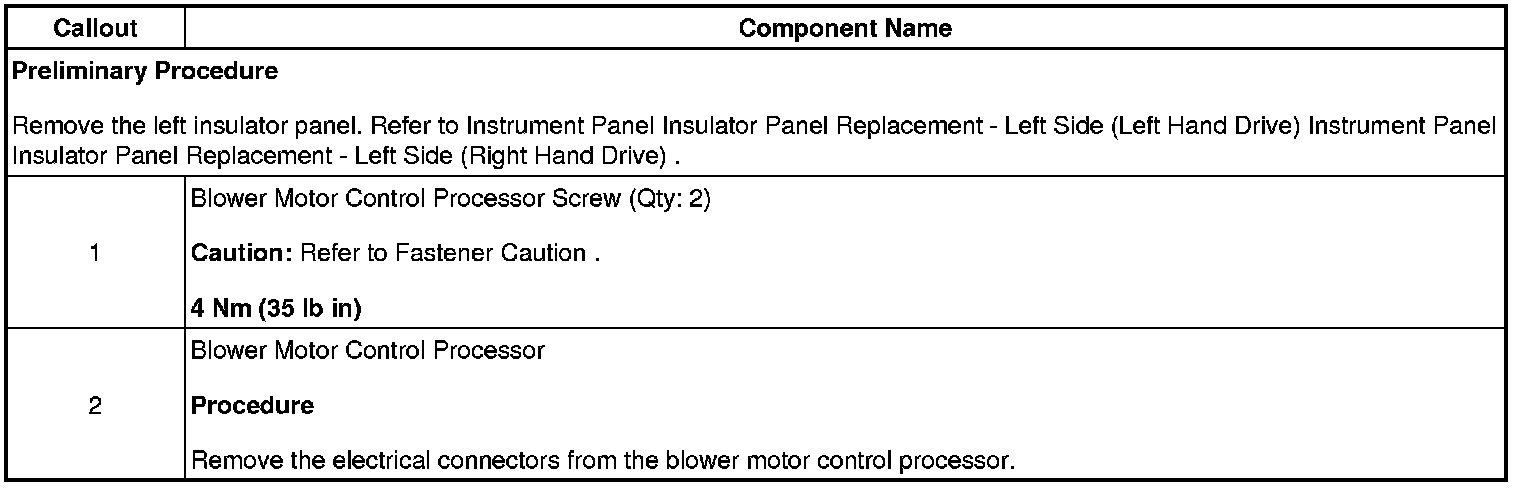 Blower Motor Control Processor Replacement (Right Hand Drive)