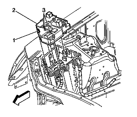 1. Install fasteners (1, 2) securing the electrical center (3) to vehicle.