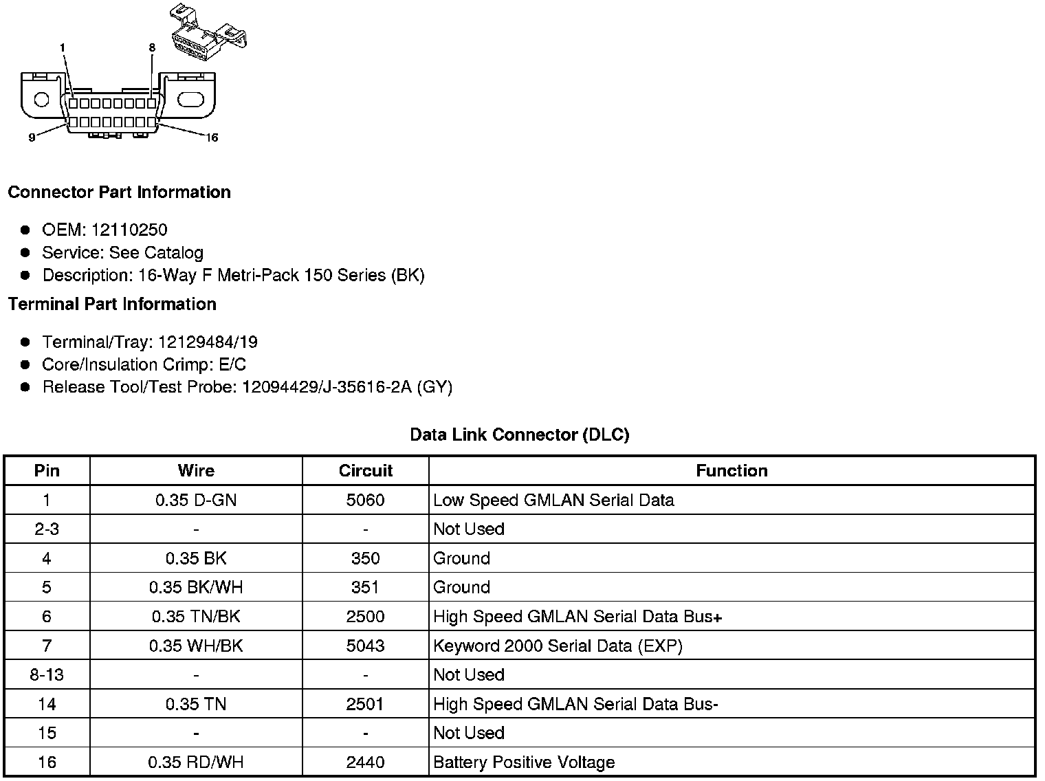 Data Link Connector: Diagrams