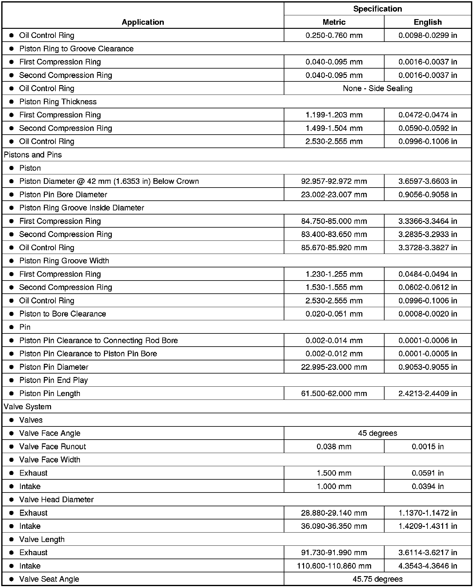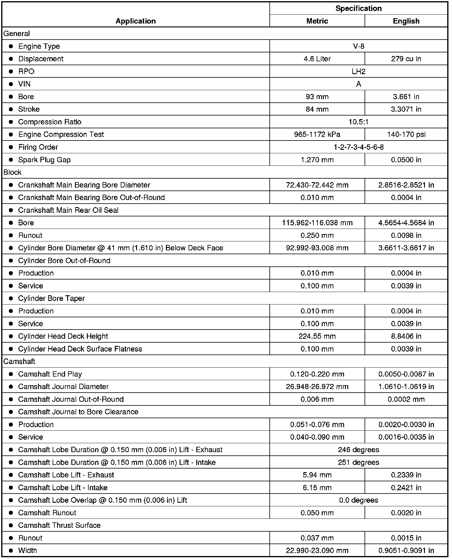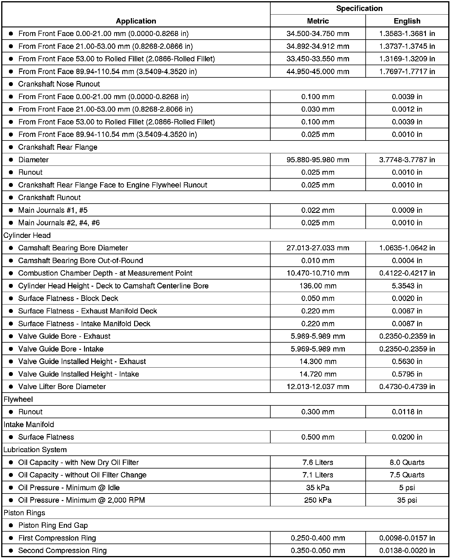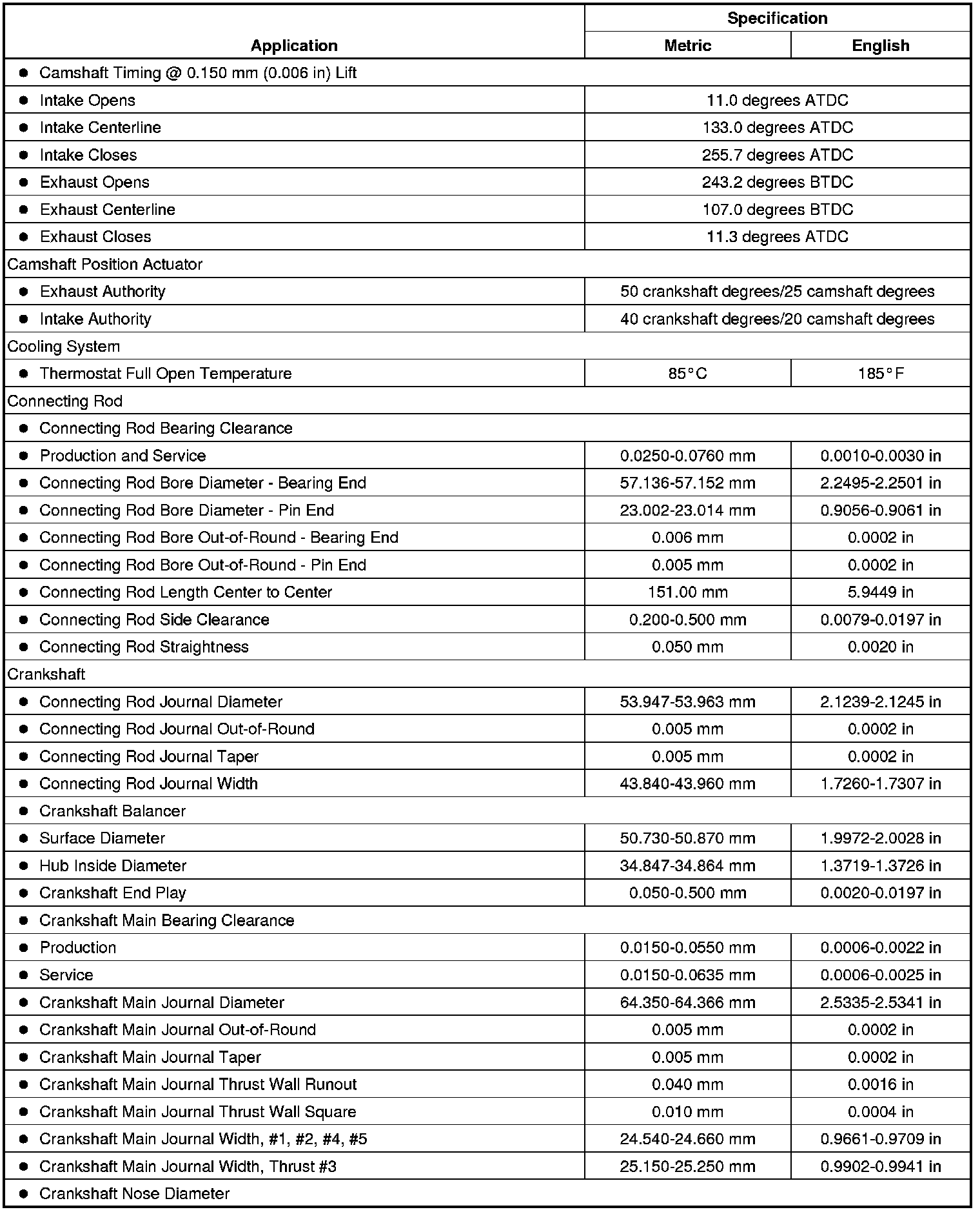 Engine Mechanical Specifications