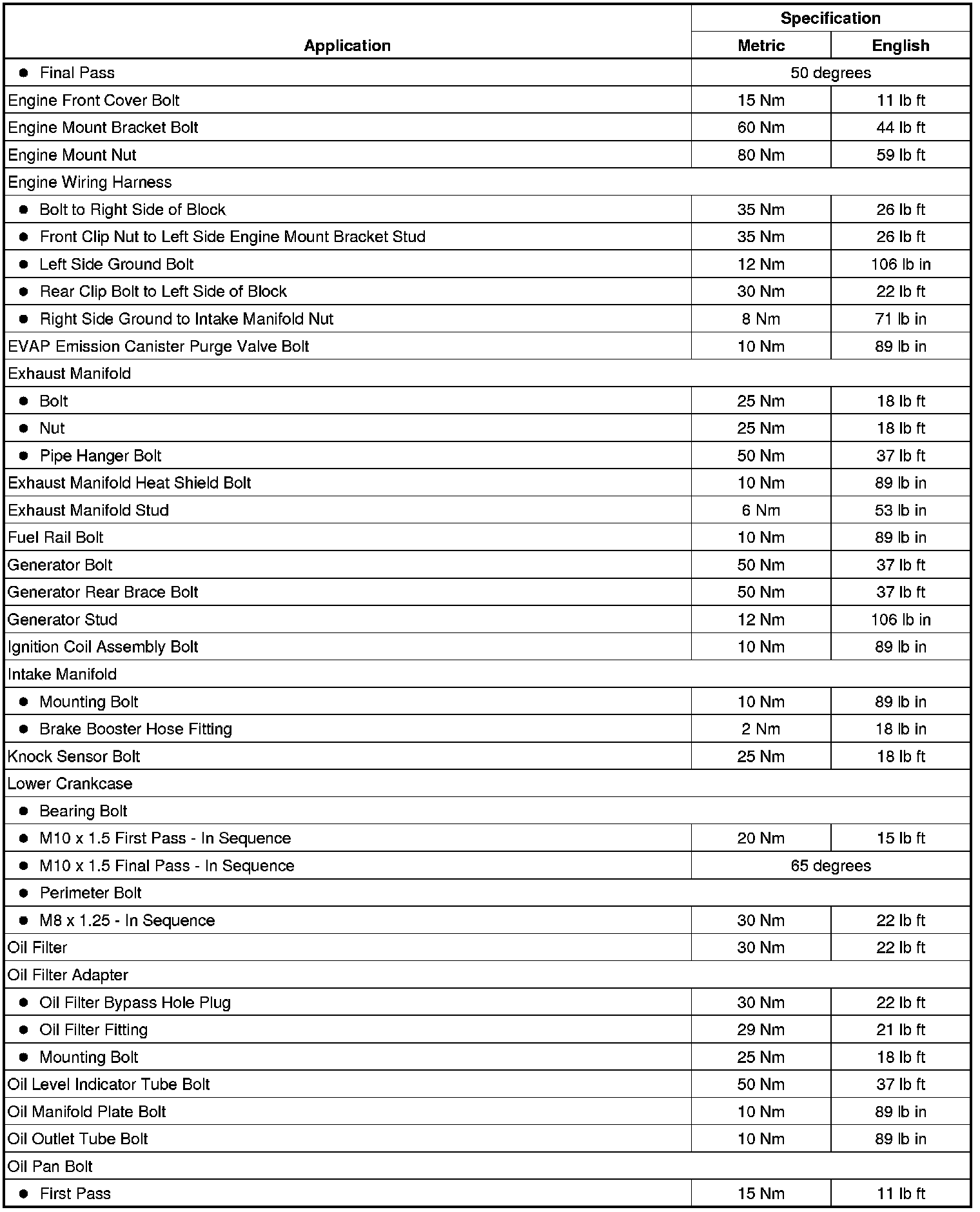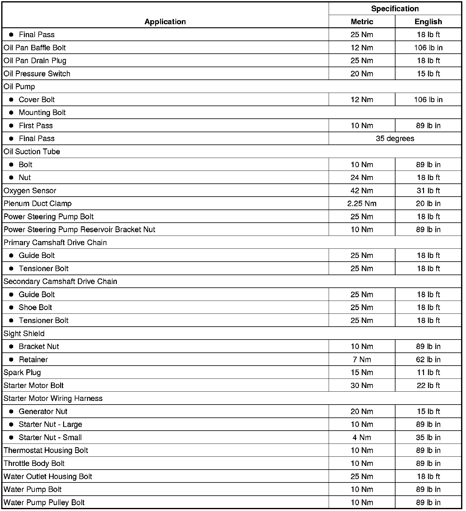 Fastener Tightening Specifications