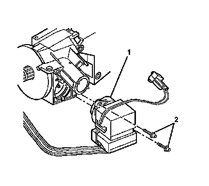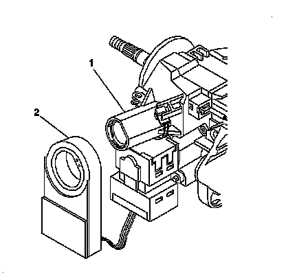 3. Install the theft deterrent control module (2) onto the ignition lock cylinder case (1).