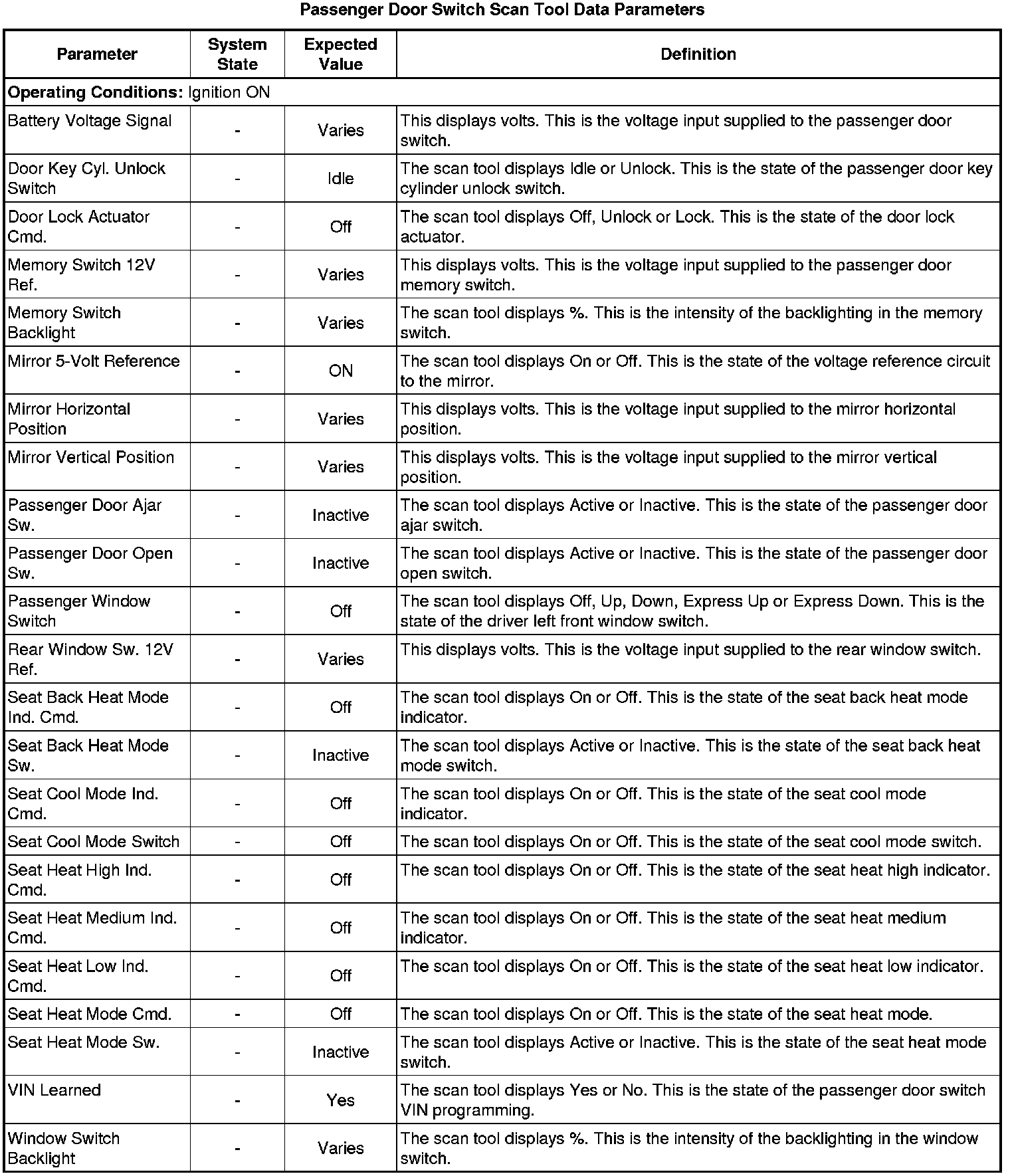 Door Lock Control Module Scan Tool Information (Passenger Door Switch)