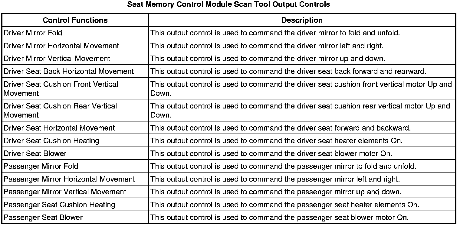 Driver Seat Adjuster Memory Module Scan Tool Information