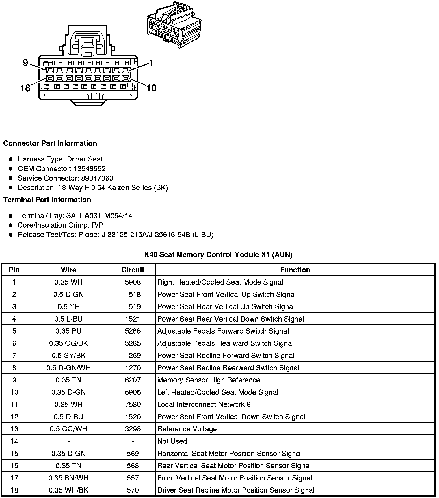 K40 Seat Memory Control Module X1 (AUN)