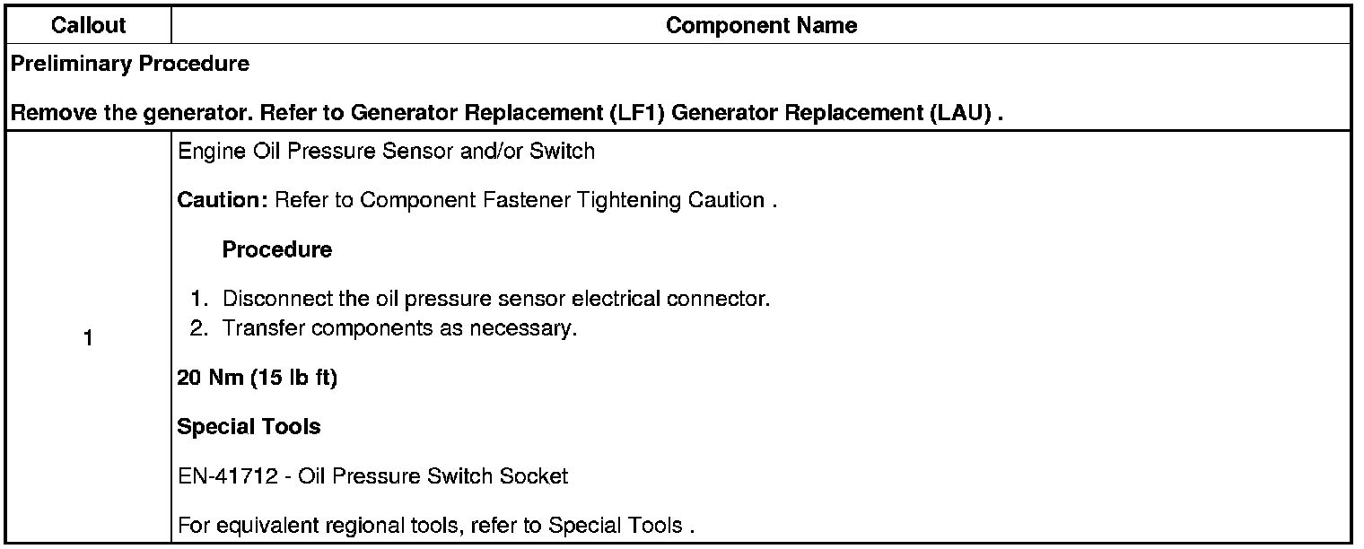Engine Oil Pressure Sensor and/or Switch Replacement (LF1)