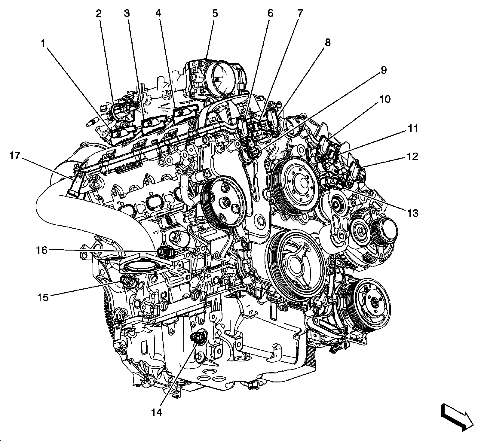 Right Side and Rear of Engine Components (LAU)