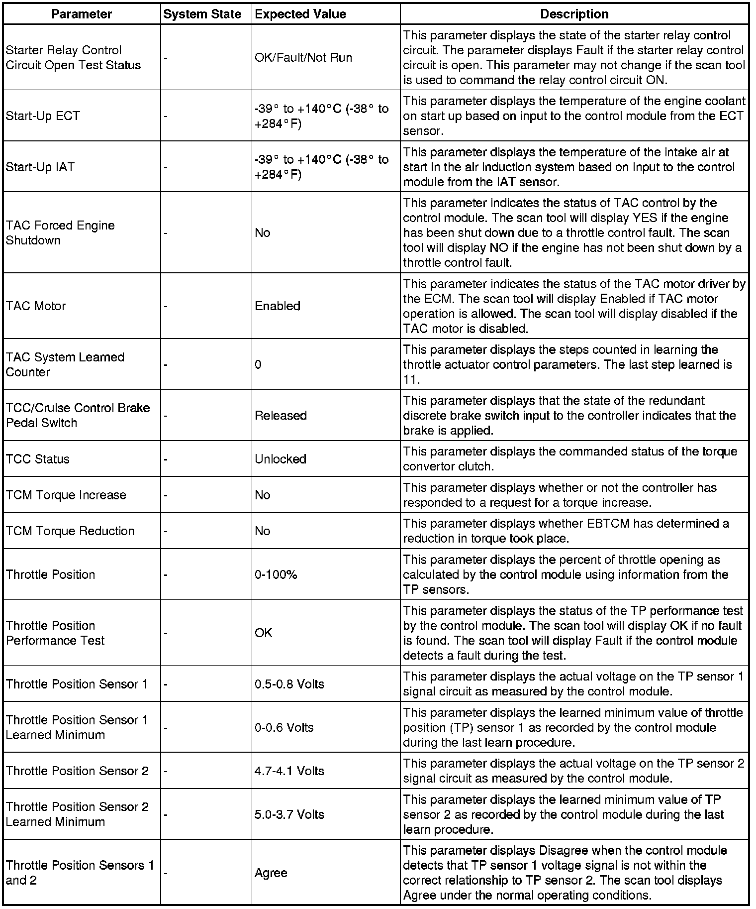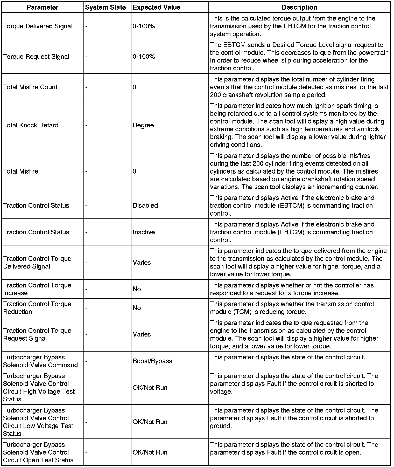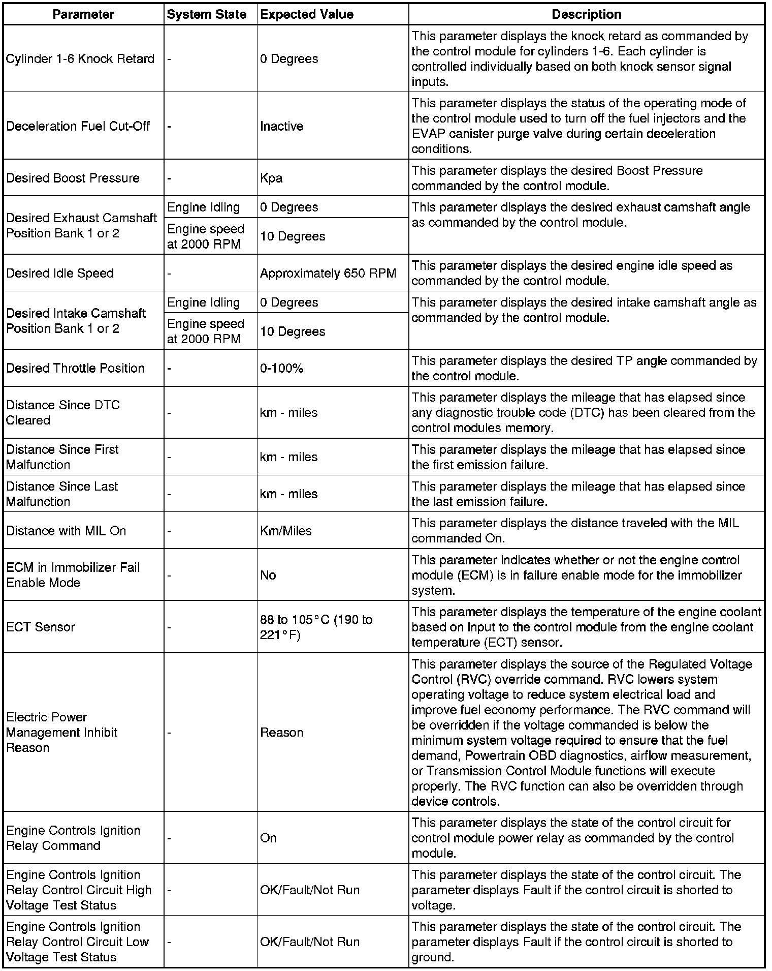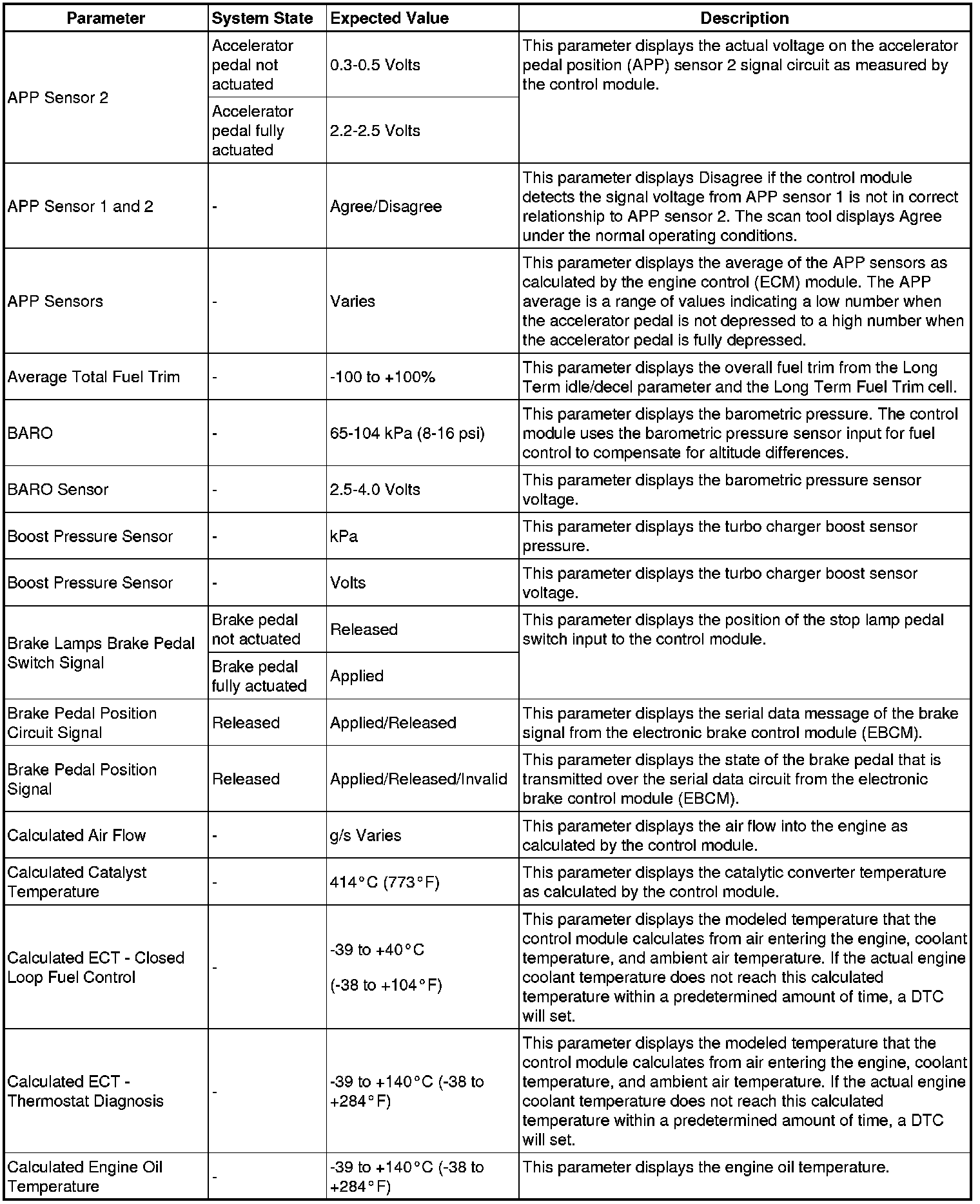 The Engine Control Module Scan Tool Data List contains all engine-related parameters that are available on the scan tool. The list is arranged in alphabetical order. A given parameter may appear in any one of the data lists, and in some cases may appear more than once, or in more than one data list in order to group certain related parameters together.