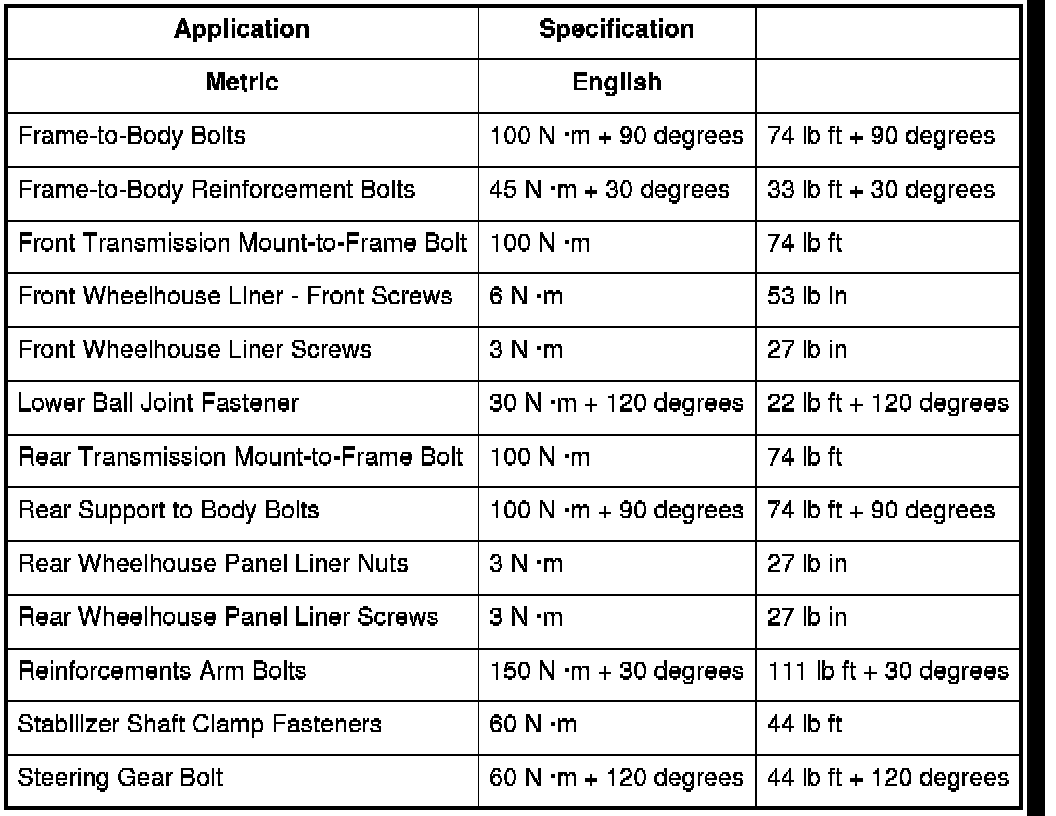 Fastener Tightening Specifications