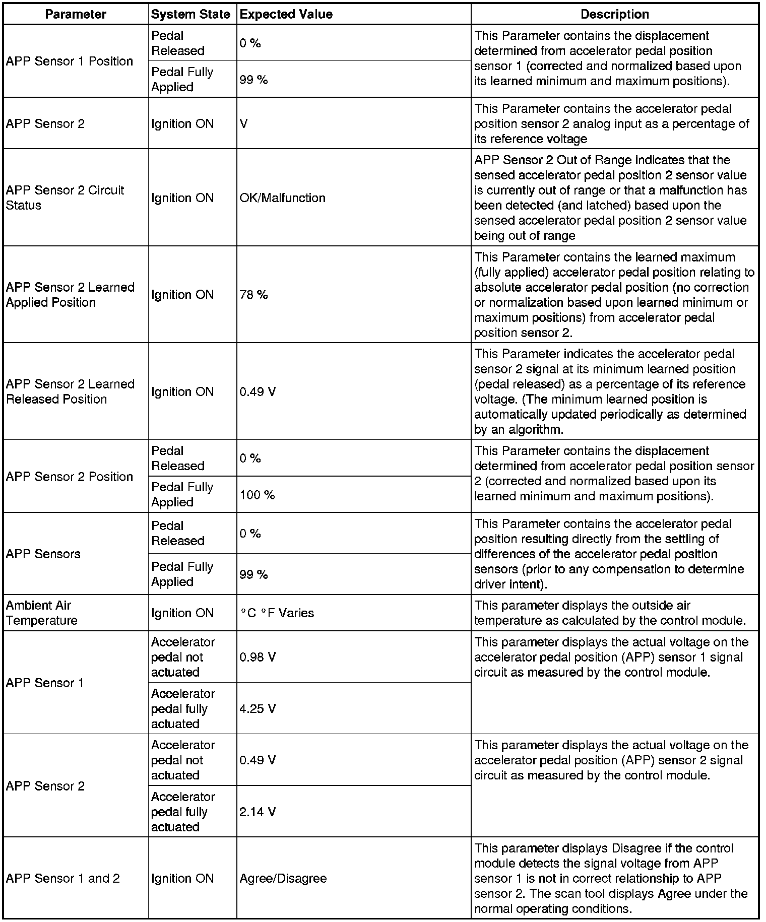 The Engine Control Module Scan Tool Data List contains all engine-related parameters that are available on the scan tool. The list is arranged in alphabetical order. A given parameter may appear in any one of the data lists, and in some cases may appear more than once, or in more than one data list in order to group certain related parameters together.