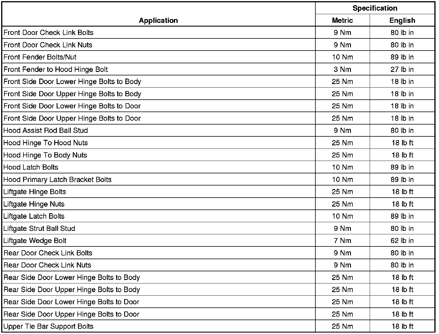 Fastener Tightening Specifications
