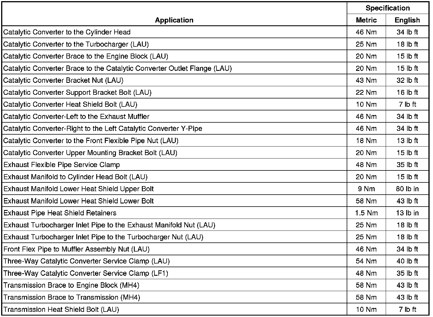 Fastener Tightening Specifications