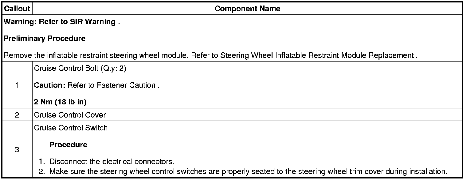 Cruise Control Switch: Service and Repair