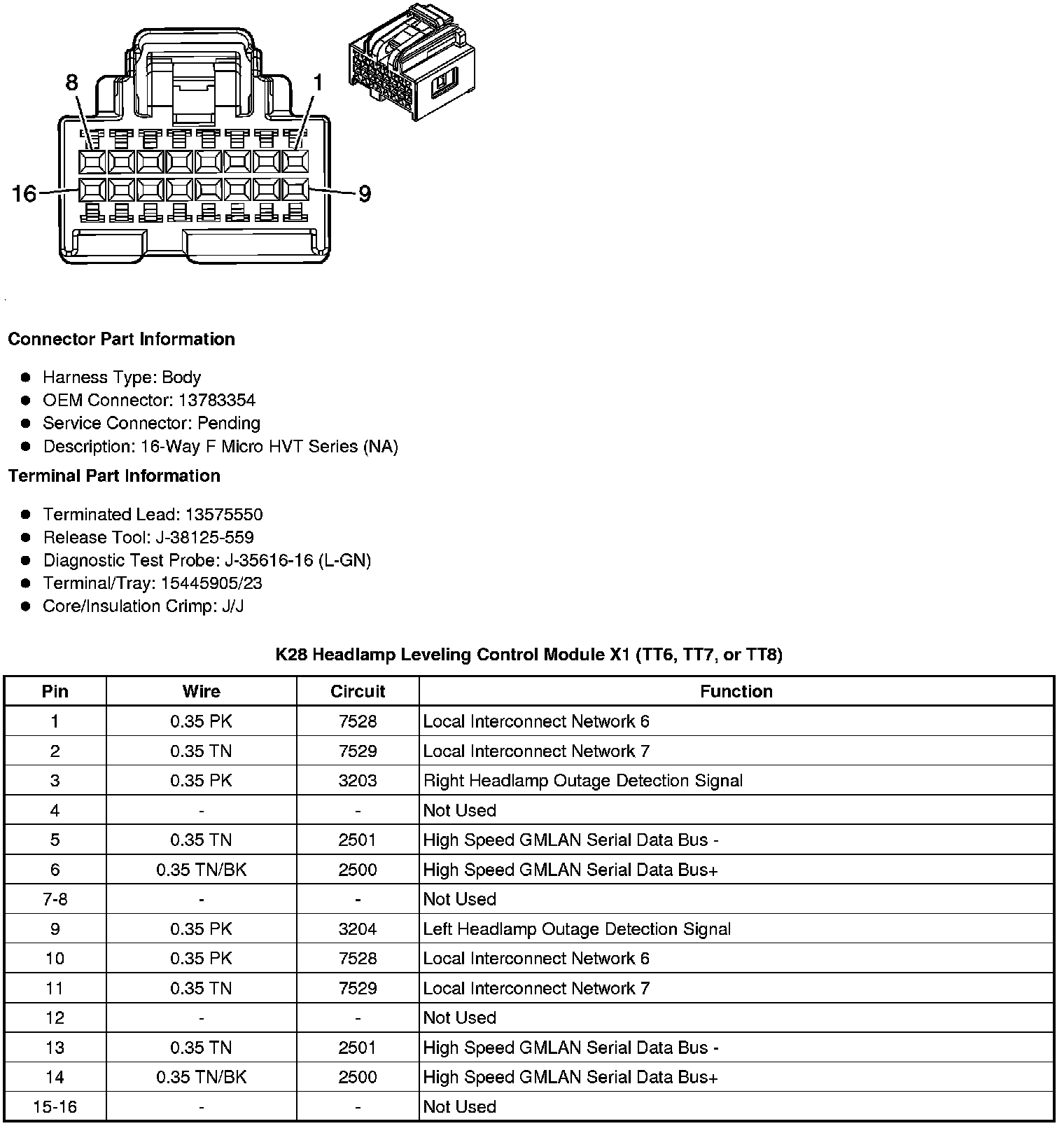 K28 Headlamp Leveling Control Module X1 (TT6, TT7, or TT8)
