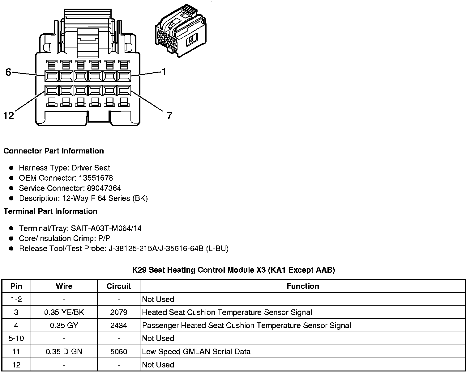 K29 Seat Heating Control Module X3 (KA1 Except AAB)