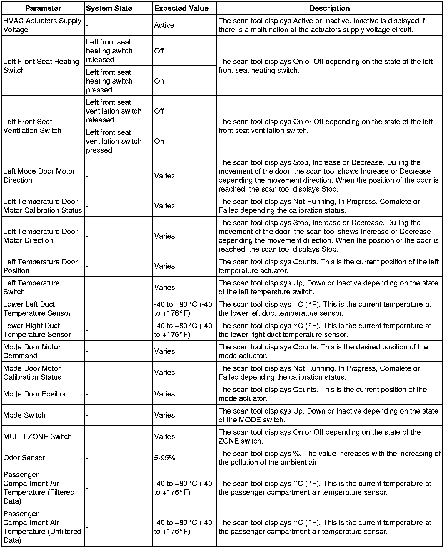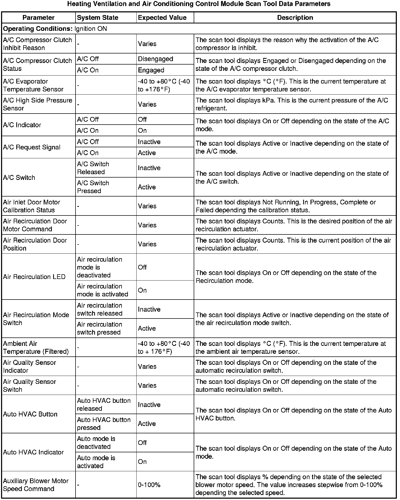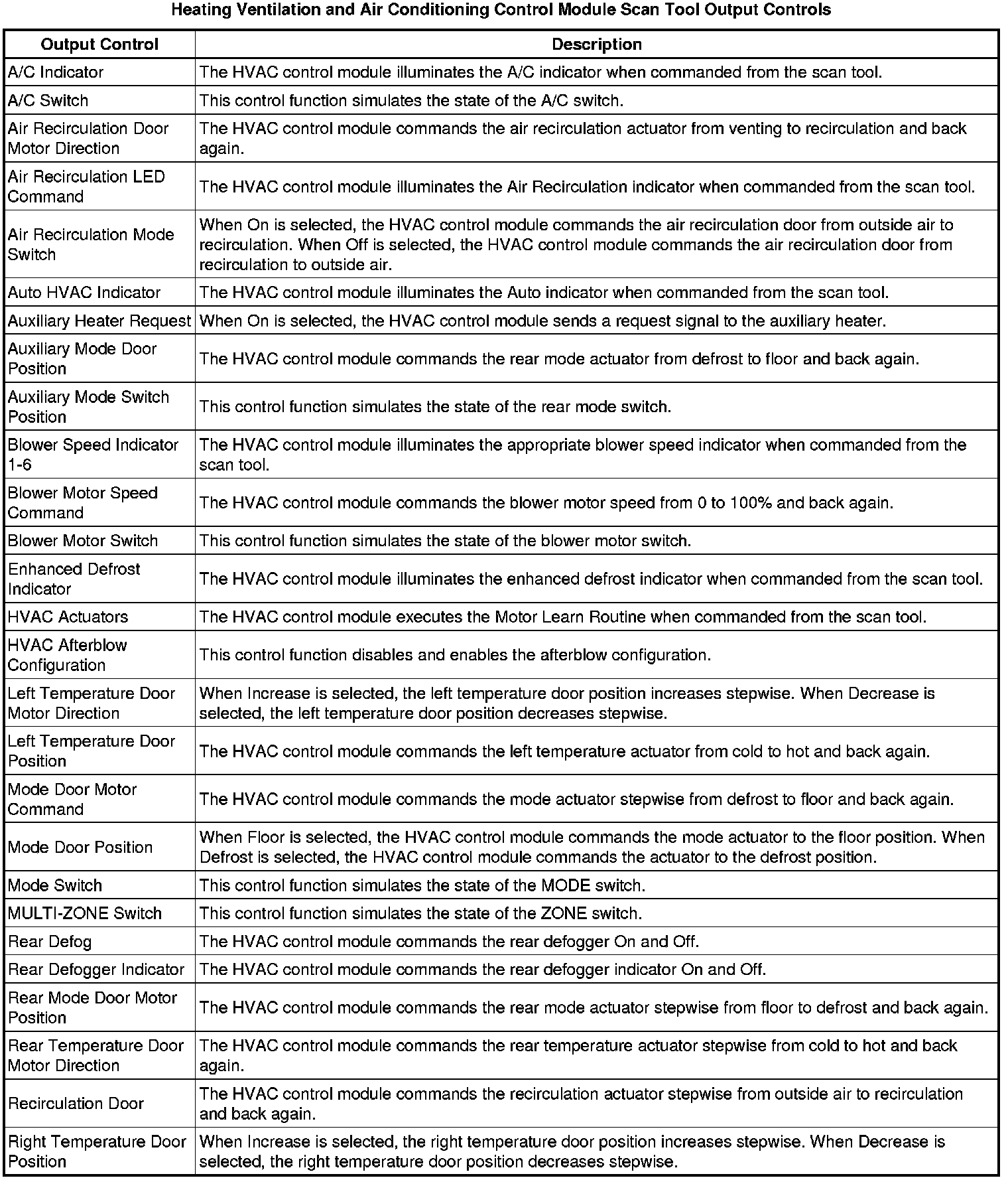 Heating, Ventilation and Air Conditioning Control Module Scan Tool Information