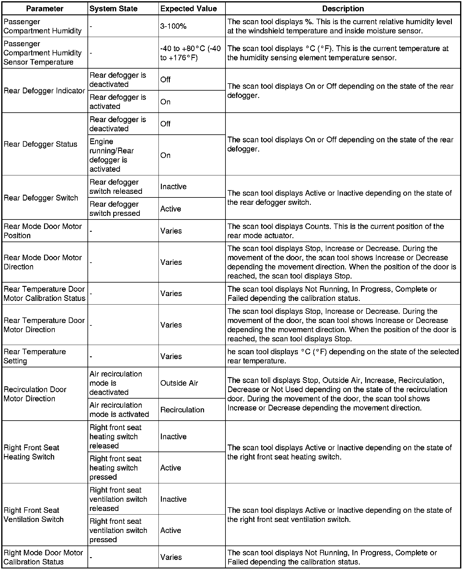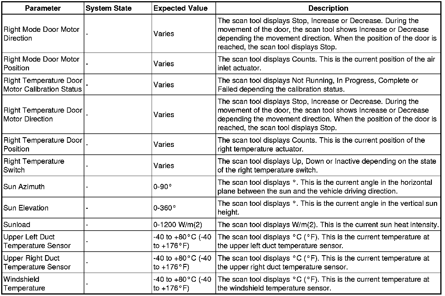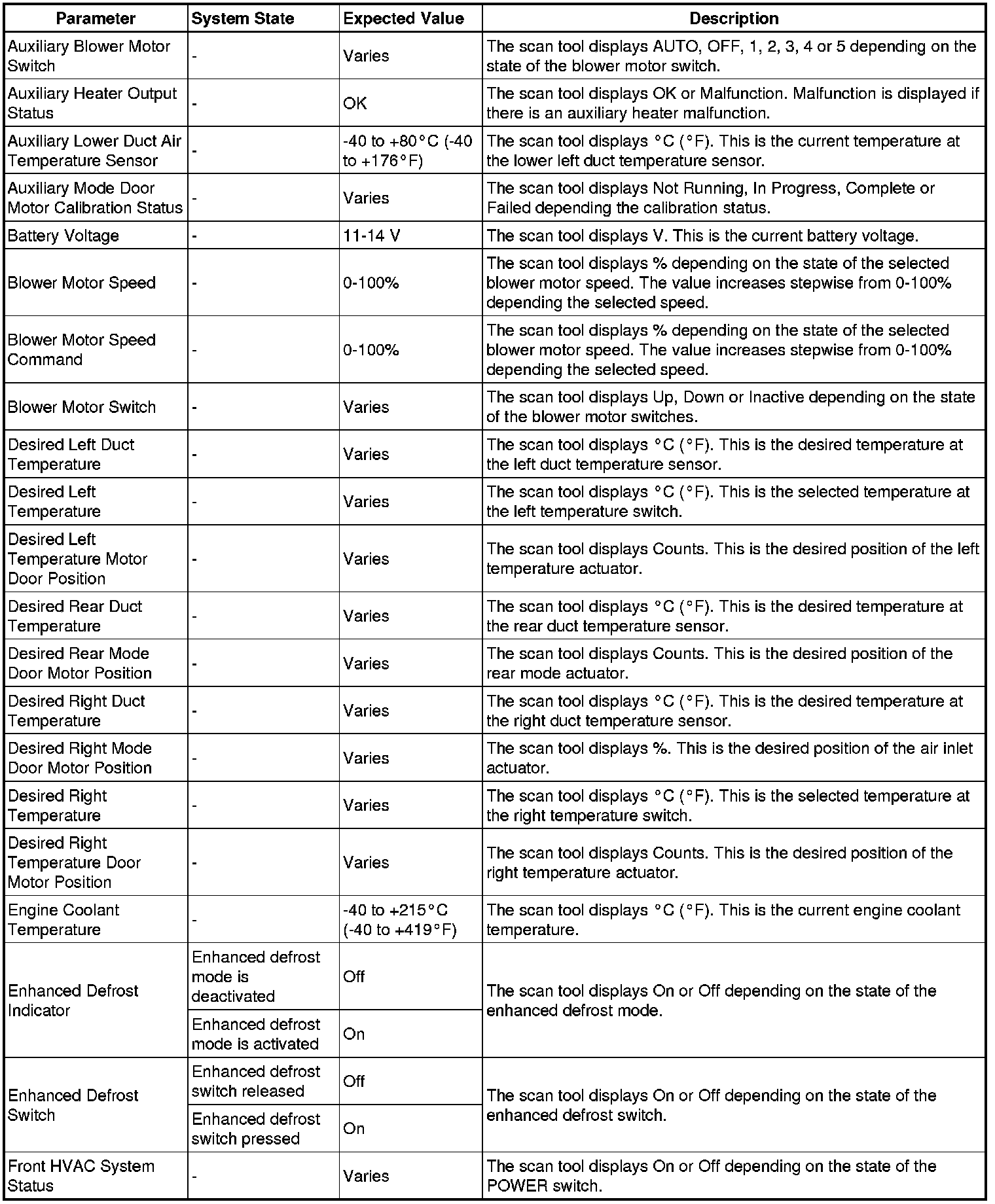 Heating, Ventilation and Air Conditioning Control Module Scan Tool Information