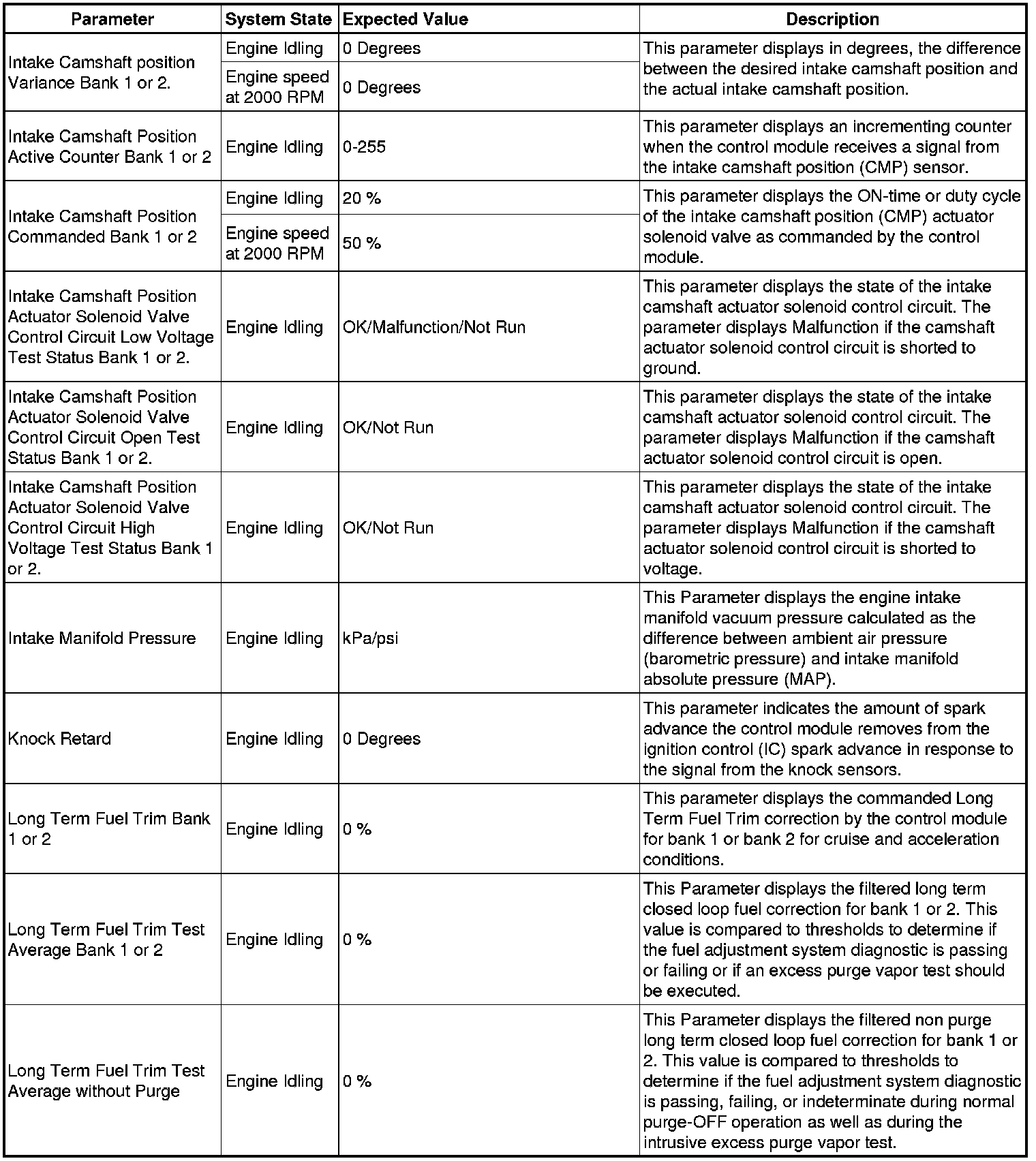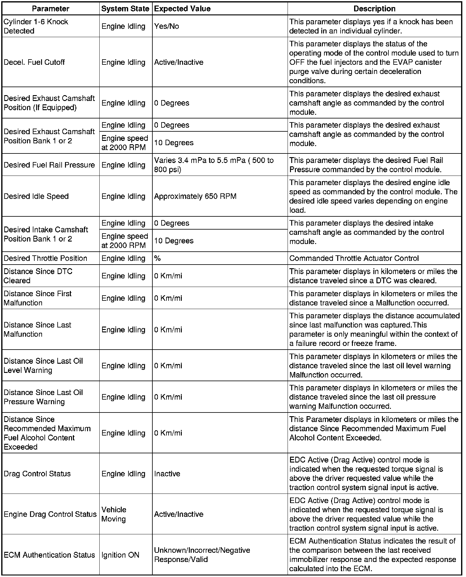 The Engine Control Module Scan Tool Data List contains all engine-related parameters that are available on the scan tool. The list is arranged in alphabetical order. A given parameter may appear in any one of the data lists, and in some cases may appear more than once, or in more than one data list in order to group certain related parameters together.