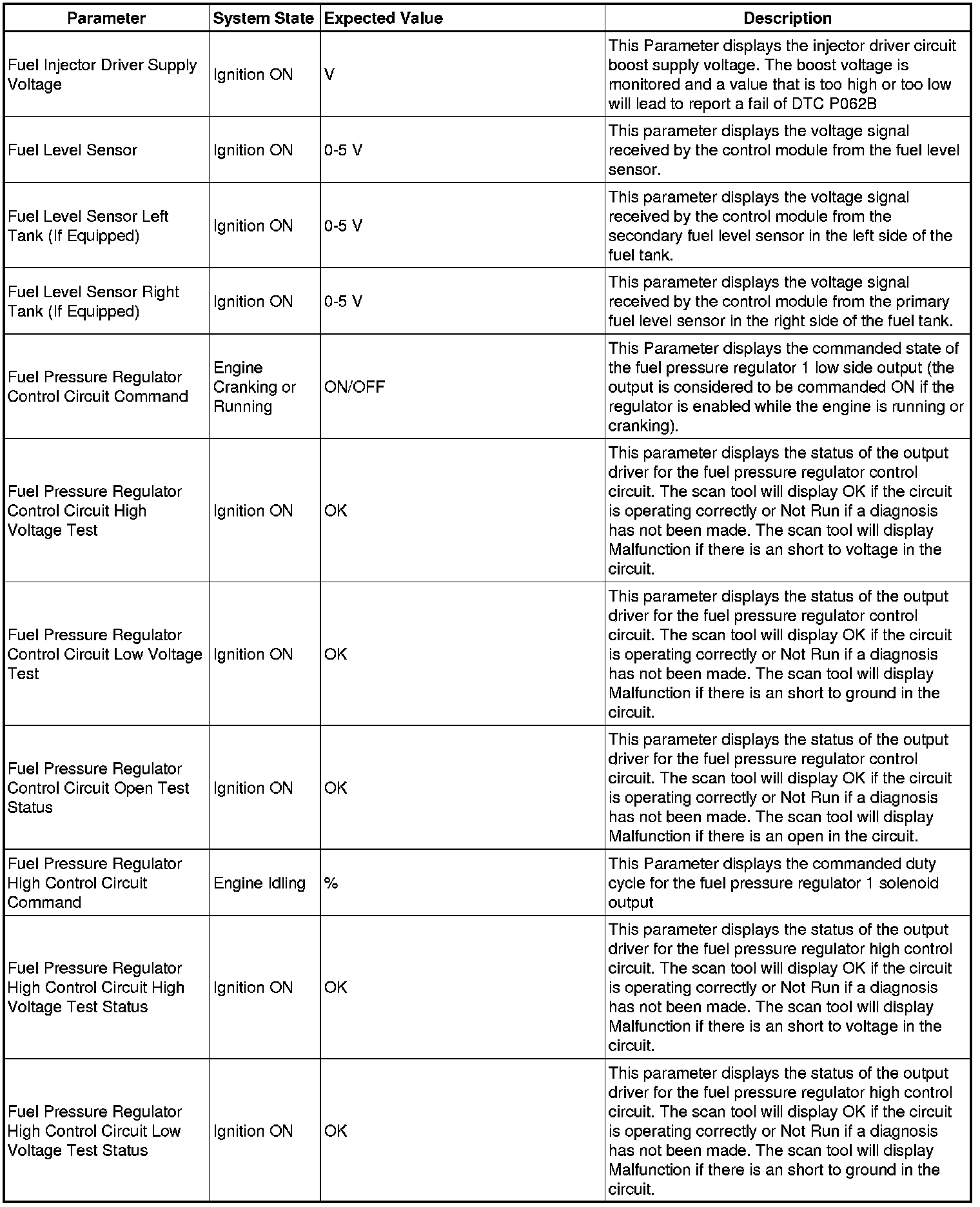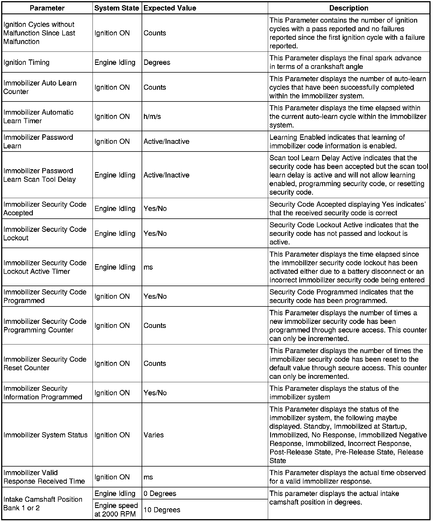 Only the parameters listed below are referenced in this service manual for use in diagnosis.