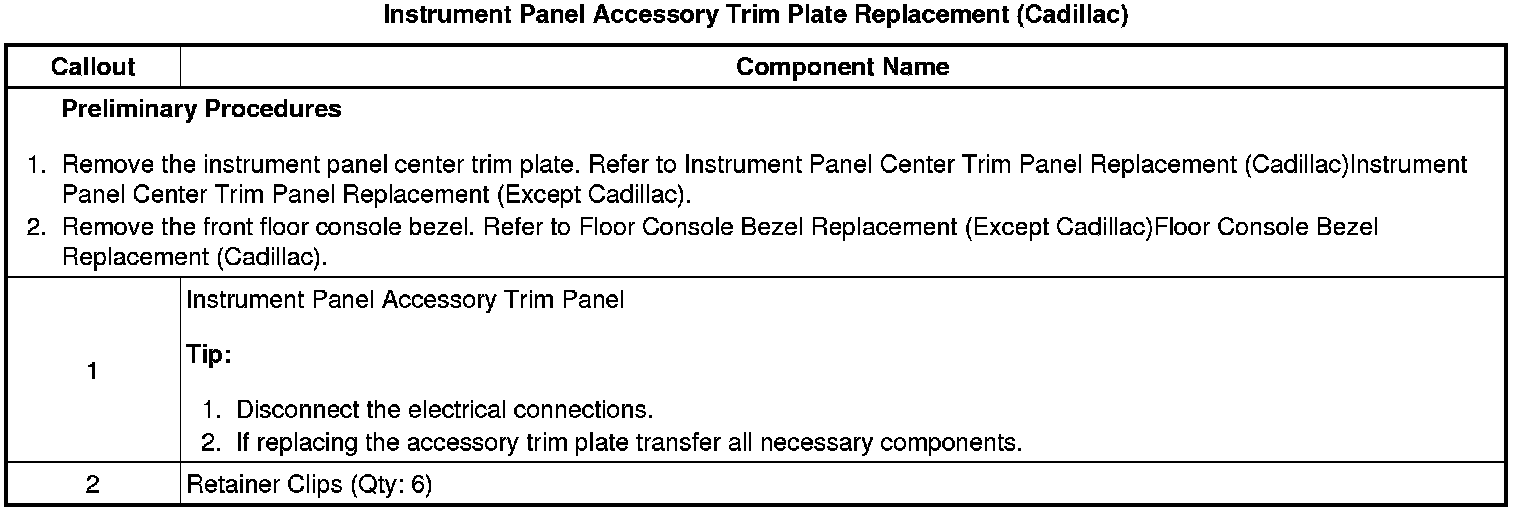 Instrument Panel Accessory Trim Plate Replacement (Cadillac)