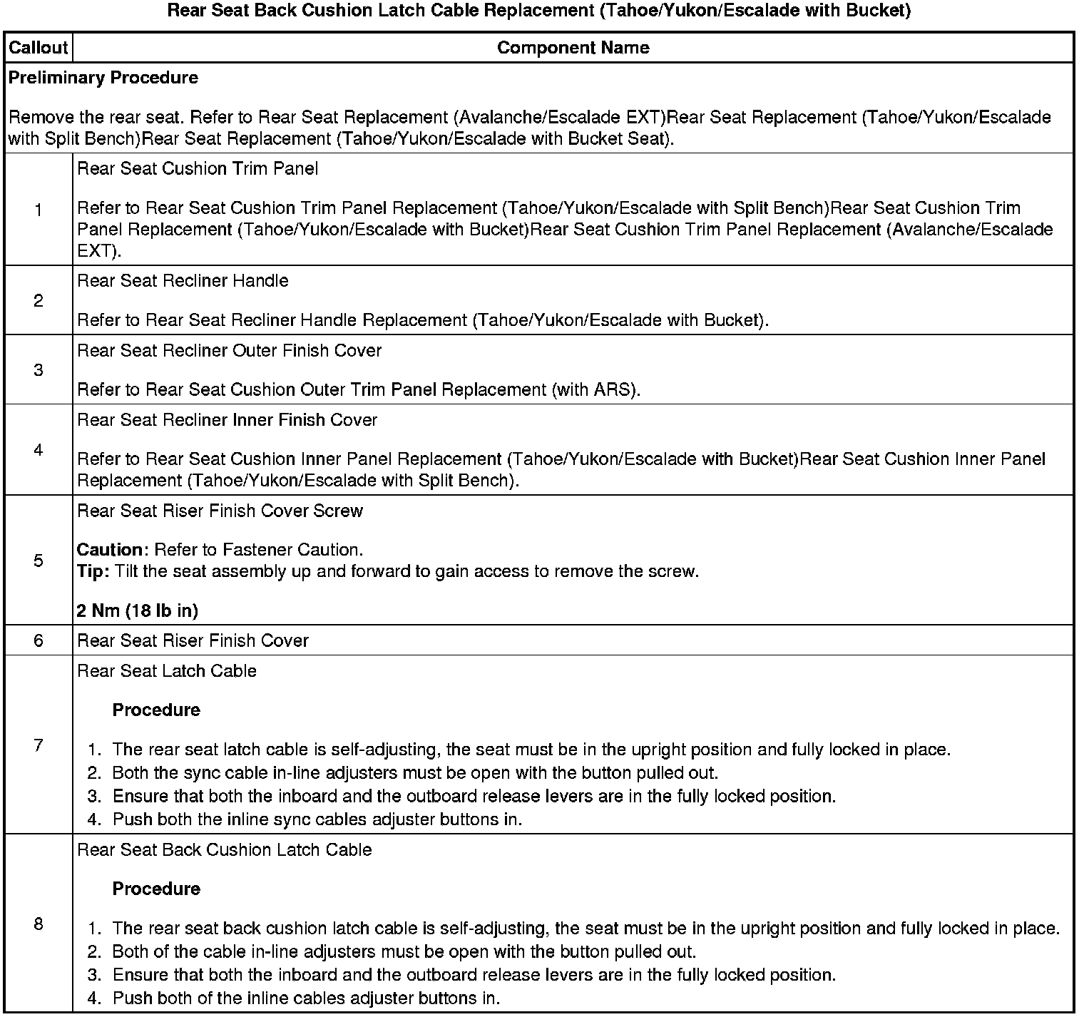 Cushion Latch Cable Replacement (Tahoe/Yukon/Escalade with Bucket)