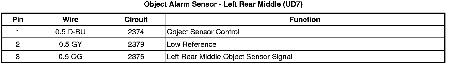 Object Alarm Sensor - Left Rear Middle (UD7)