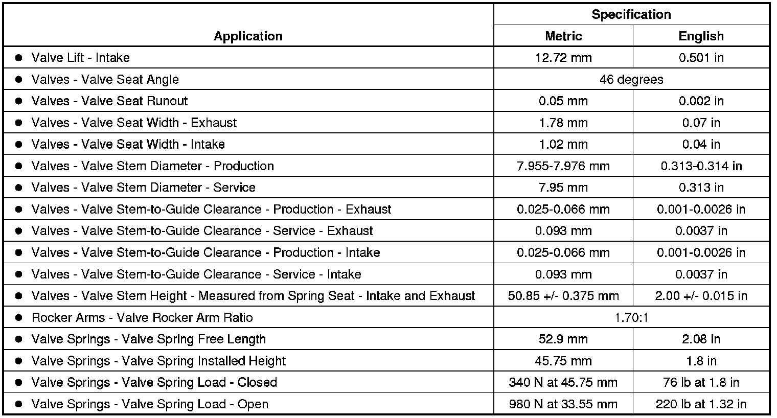 Engine Mechanical Specifications (RPO L94 VIN F)