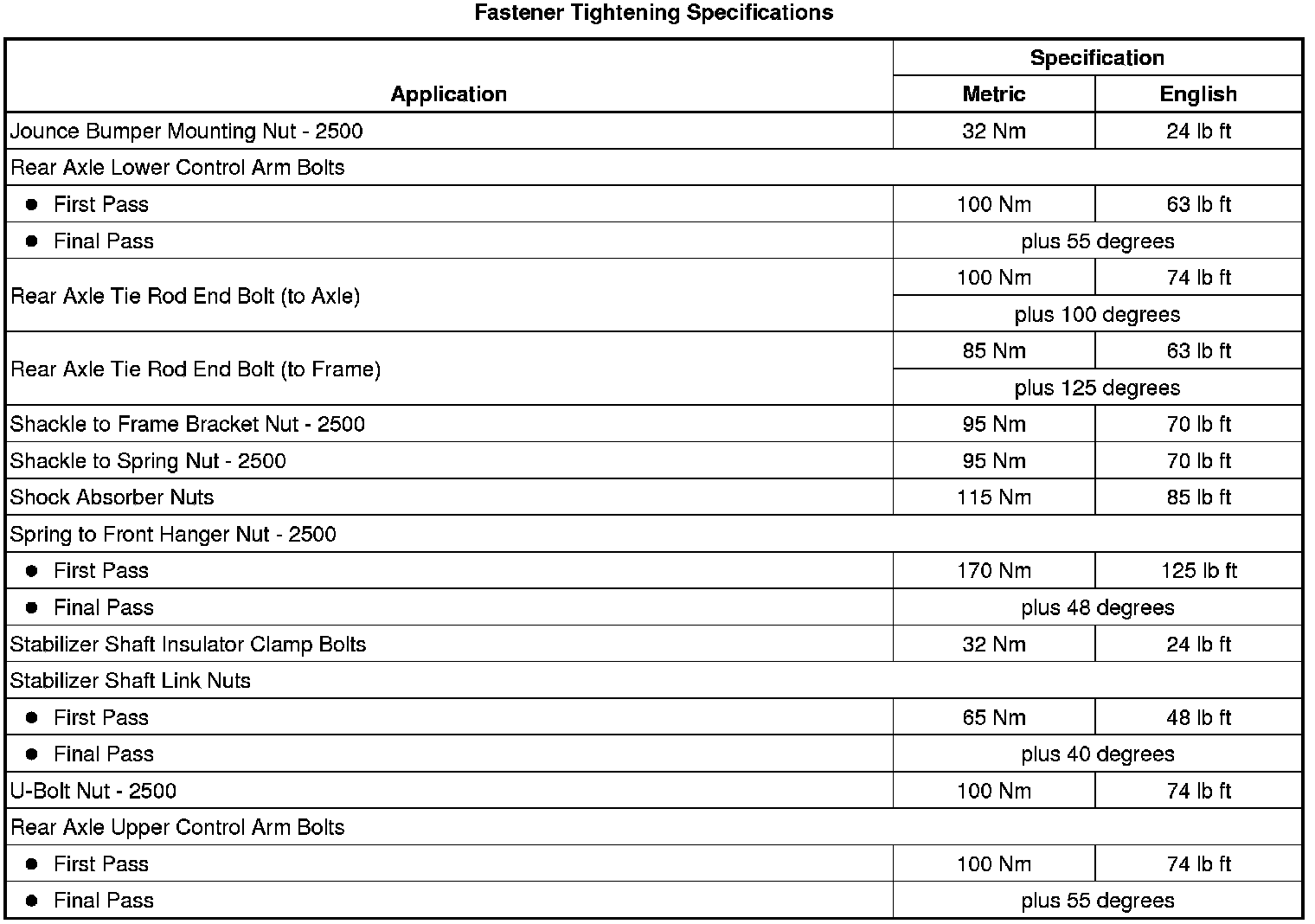Fastener Tightening Specifications