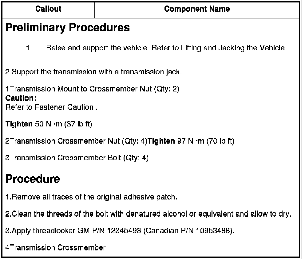 2Transmission Crossmember Nut (Qty: 4)Tighten 97 N �m (70 lb ft)