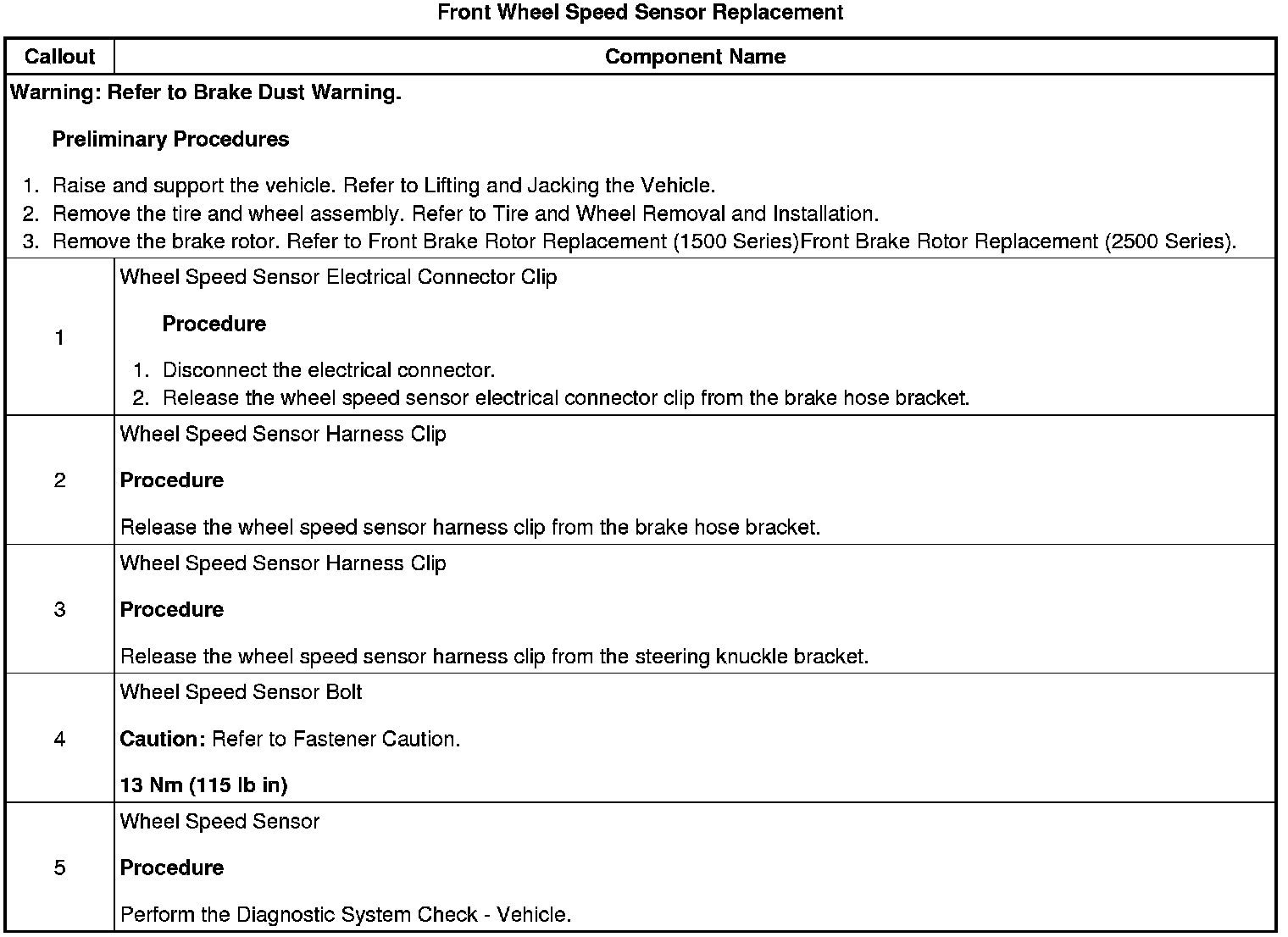 Front Wheel Speed Sensor Replacement
