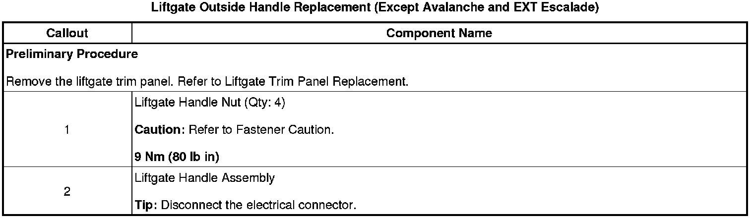 Liftgate Outside Handle Replacement (Except Avalanche and EXT Escalade)