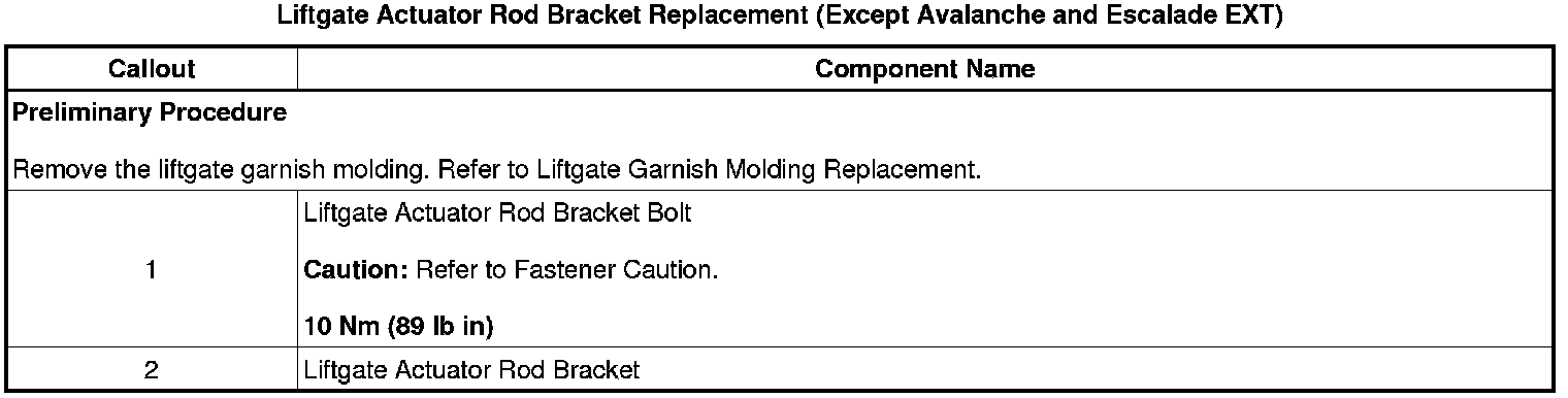 Liftgate Actuator Rod Bracket Replacement (Except Avalanche and Escalade EXT)