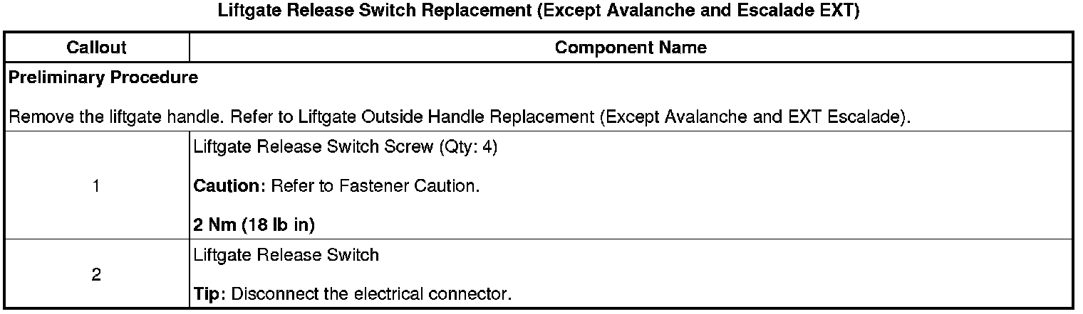 Liftgate Release Switch Replacement (Except Avalanche and Escalade EXT)