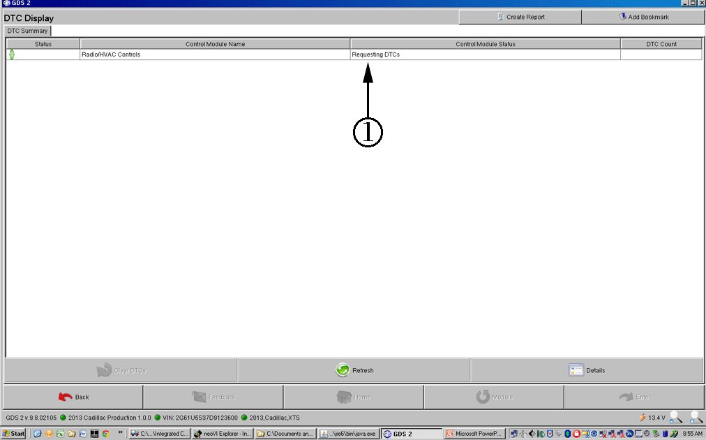 17. Using GDS2, navigate to the DTC Display screen. From GDS2: Diagnostics>Module Diagnostics>Radio/HVAC Controls>Diagnostic Trouble Codes (DTC)>DTC Display.