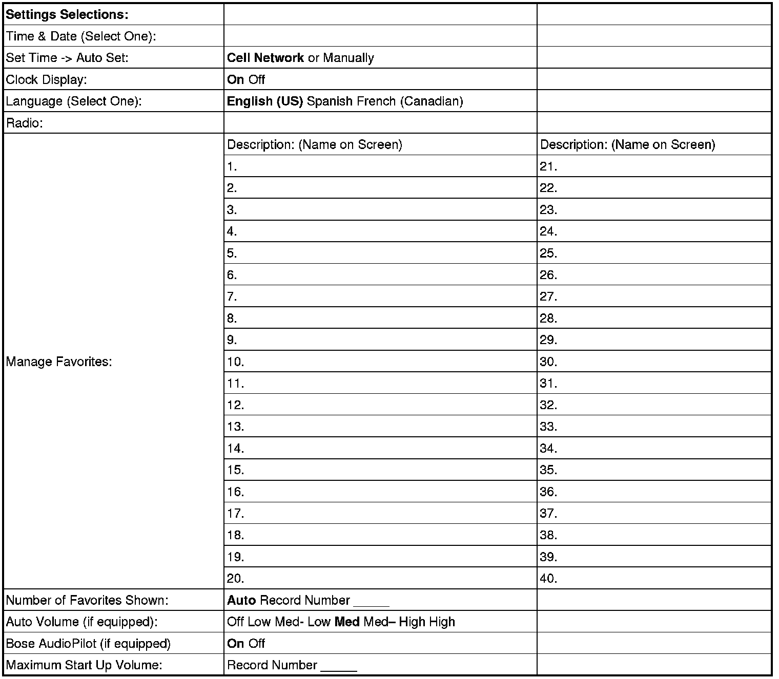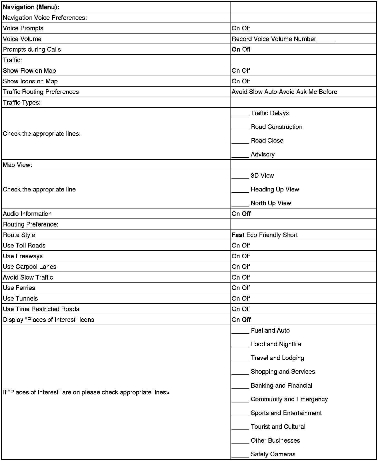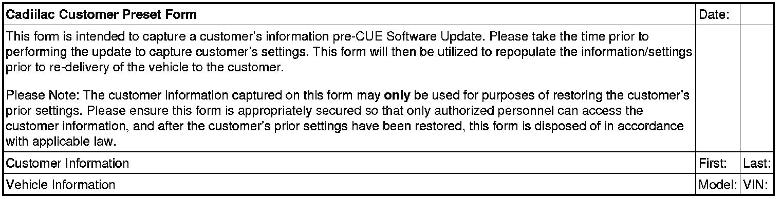 This form is not intended to be all encompassing; Dealership personnel will help reset the following items when the vehicle is re-delivered to the customer:
