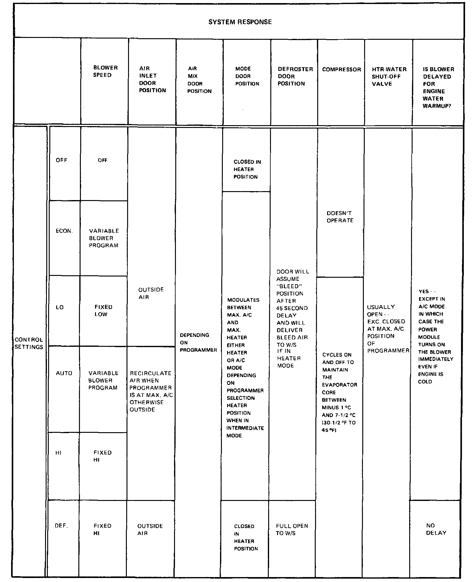 System Response Chart
