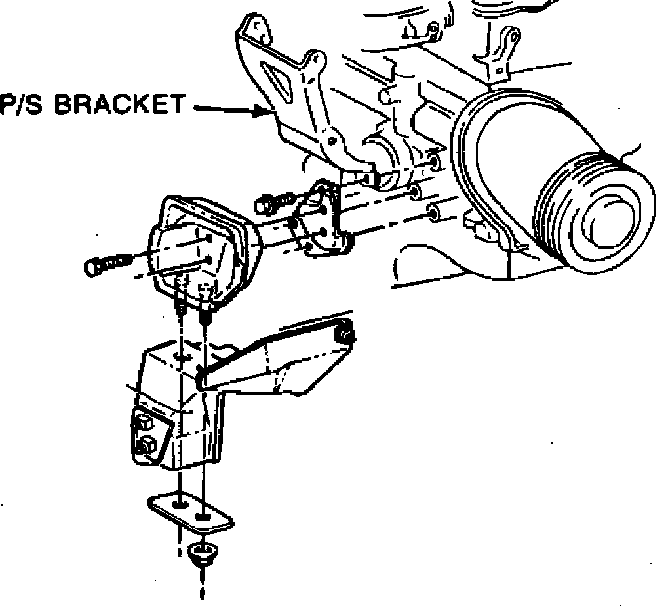 6. Reverse procedure to install, using new engine mount bolts. Remove alignment bolt and torque engine mount to side frame bolts to 35-45 ft. lbs. Torque all other nuts and bolts to 25-35 ft. lbs. If excessive effort is required to remove alignment bolt, loosen transaxle adjusting bolts to align power train components.