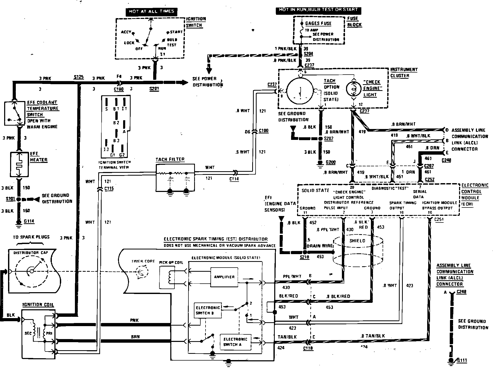 Throttle Body Injection Wiring Circuit (Check Engine Light & Ignition System):