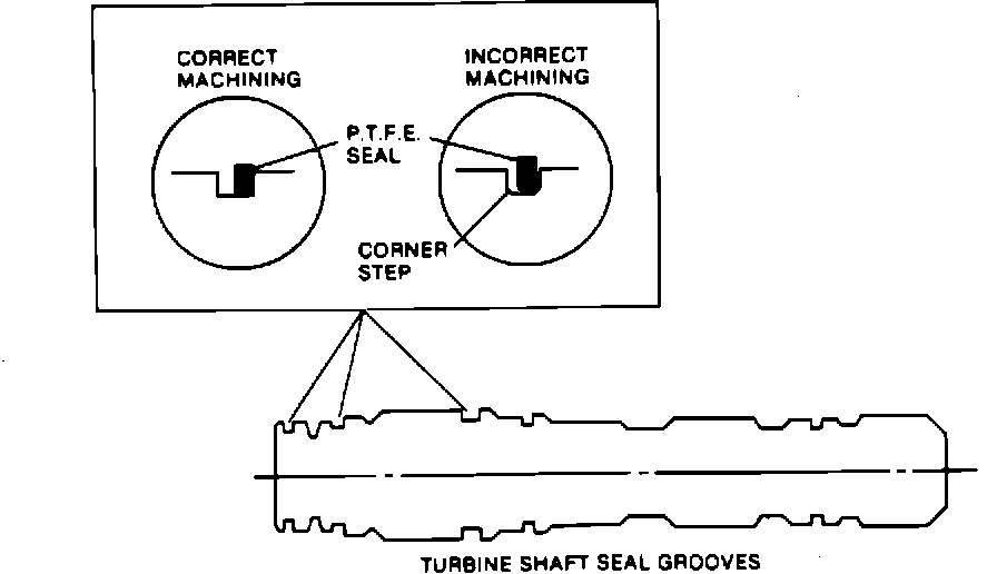 bottom corners of the seal groove will keep the seal from contacting the side wall of the groove and will prevent proper sealing (Figure 6). If this condition is found, replace the turbine shaft and seals (refer to Serviceman Bulletin 83-102, Group 7, Number 74, Item B).