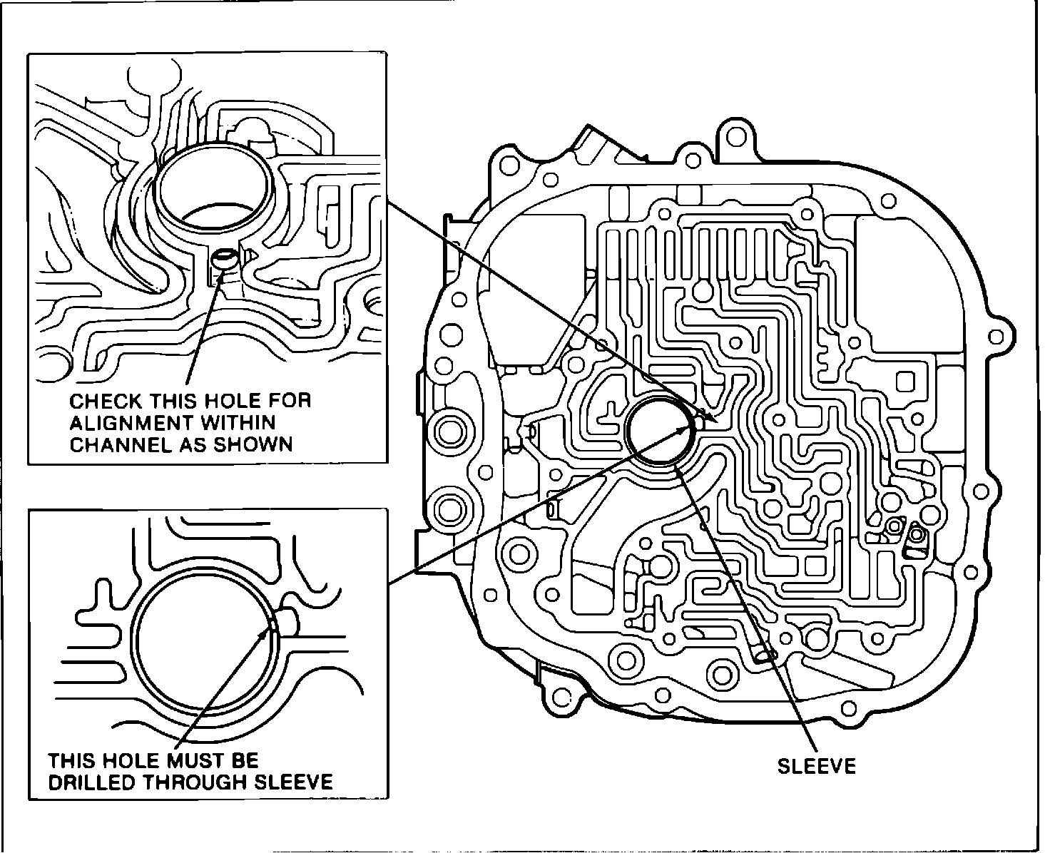 X 12. Check the case cover sleeve converter feed oil hole that