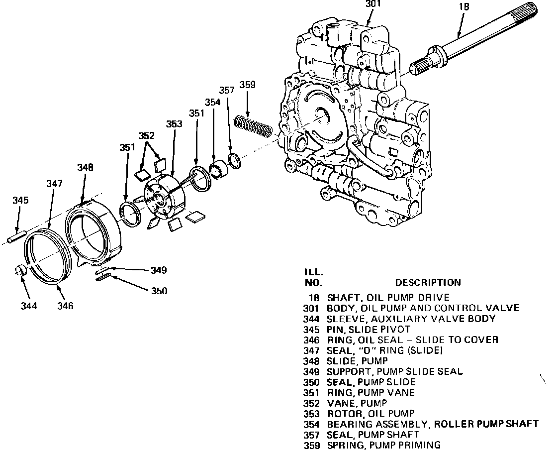 Beginning mid-April, 1983, service parts became available to separately replace the oil pump rotor and slide of the control valve and oil pump assembly, on all THM 125C transaxles. The service procedure in this bulletin must be followed to assure proper end clearance of the replacement oil pump rotor and/or slide into the original control valve and oil pump assembly.