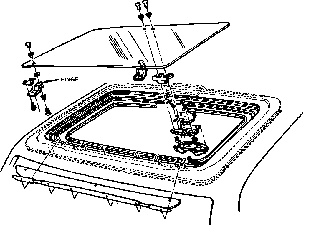 Any sunroof glass in stock with old style hinges should have the new hinges installed before it is placed in service.